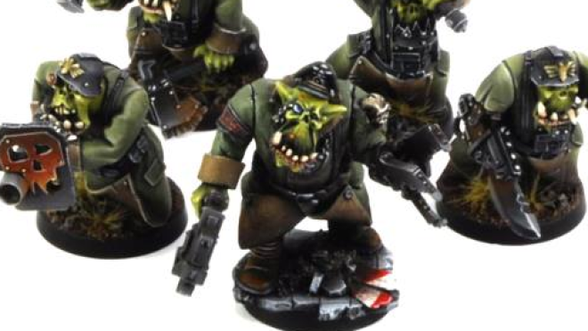 Kromlech's Armoured orcs are completely finished and available as a full assault squad, ready to rush into the thick of the fight and start smacking heads together.
