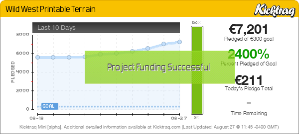 With only a few days left to run, the Wild West Buildings 3d Print campaign is going great guns. With a slew of stretch goals unlocked, you can get a pledge for everything, or for just one or 2 buildings. It's high noon and your street needs a town to go with it. Great for Dead Man's Hand or Wild West Exodus or any western project.