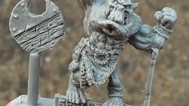 Spellcrow are continuing to rework a lot of their old greenskin minis and have just shown off a new version of an old orc, complete with brand new face and shield.