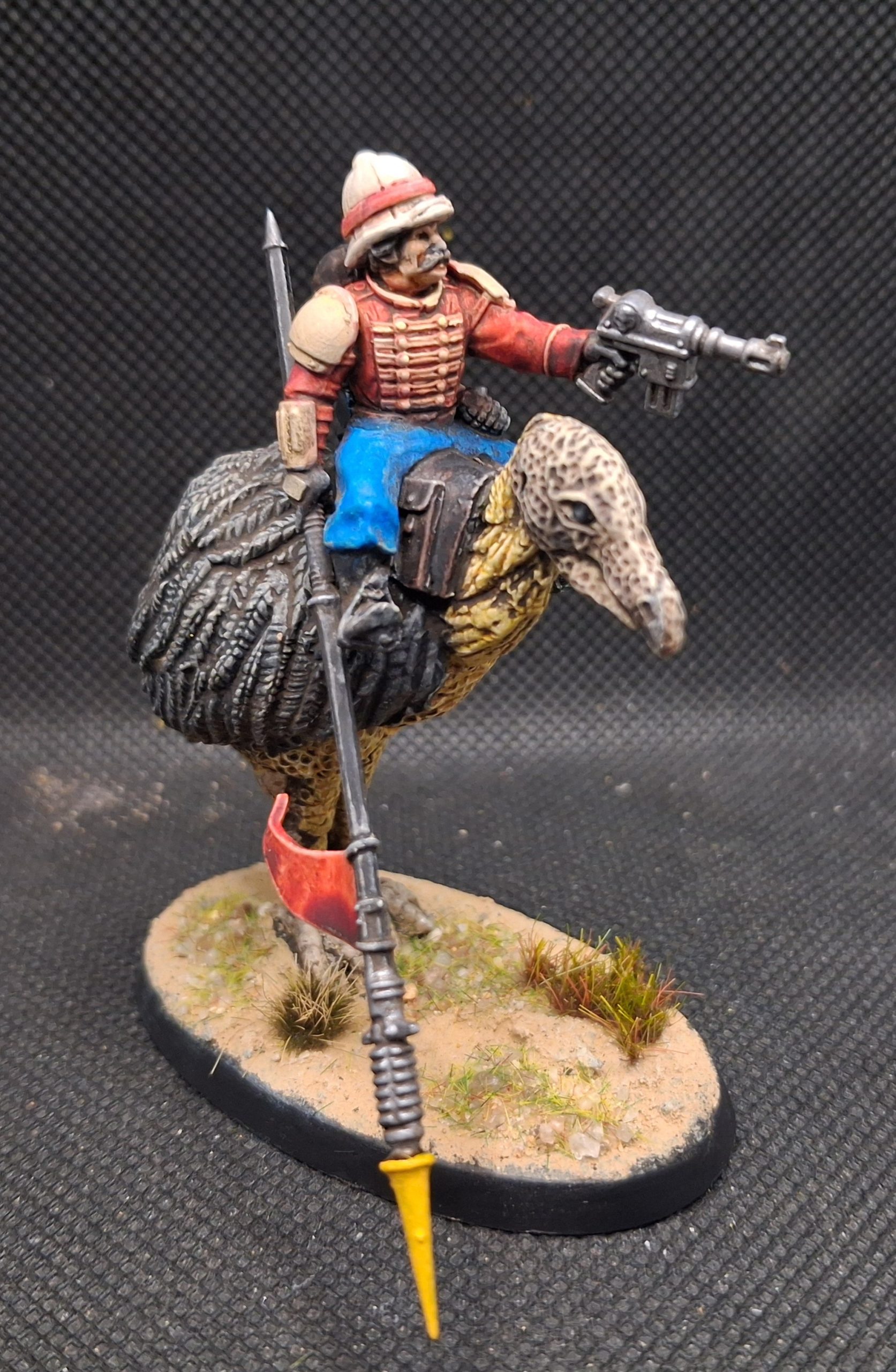 As well as those brilliant miniatures with some really nice bases, you also have something insanely brilliant. Not content playing with normal Rough Riders, thebelon has done another Praetorian Guard conversion and built some Rogue Riders on the back of glorious birds, the Coral Knights from Oakbound Studio.