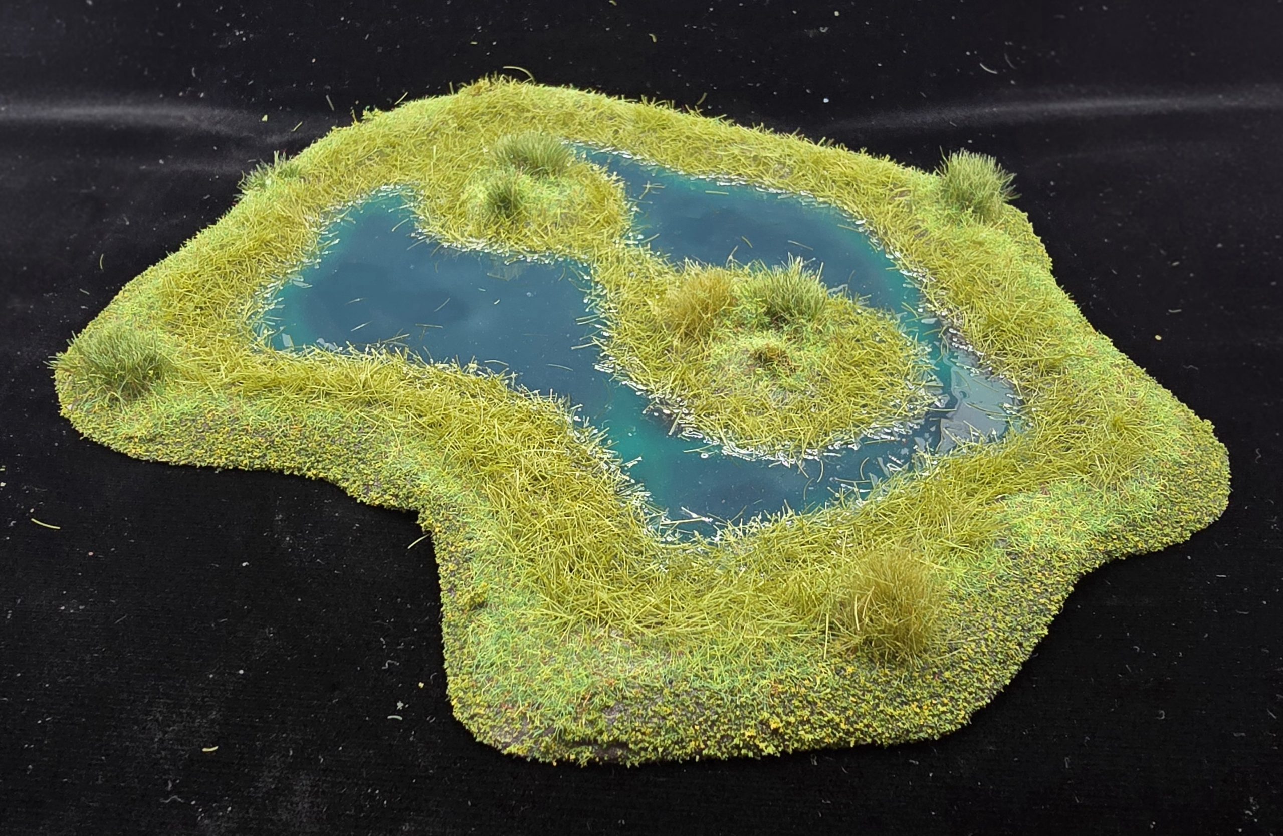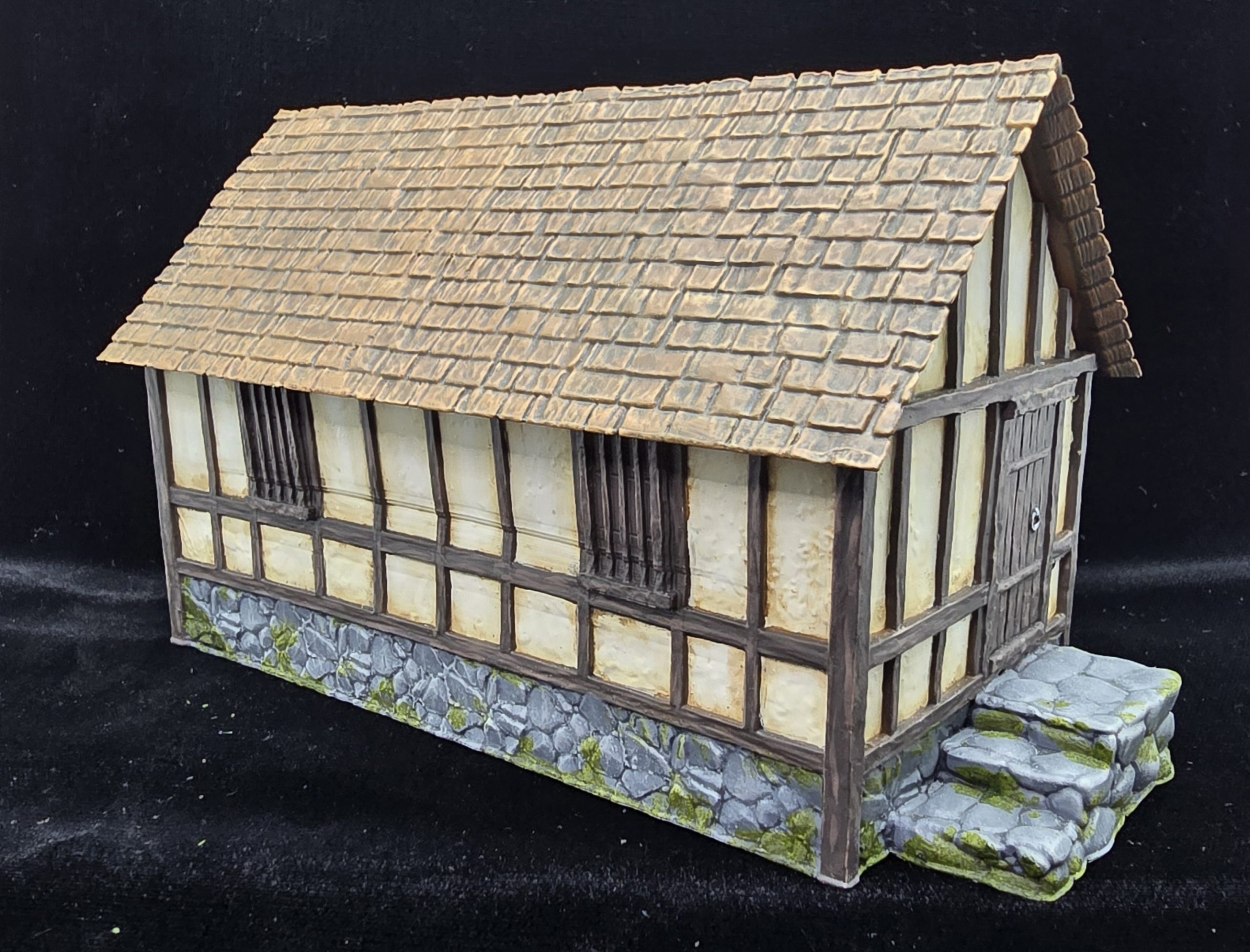 I really like the buildings that MadMeatMonkey has built and painted. I also share the hatred of having to paint all of those wooden beams on these kinds of houses! It really does suck. In addition to the houses, MadMeatMonkey has also been working on some natural terrain like marshes, bogs and also some gentle slopes.