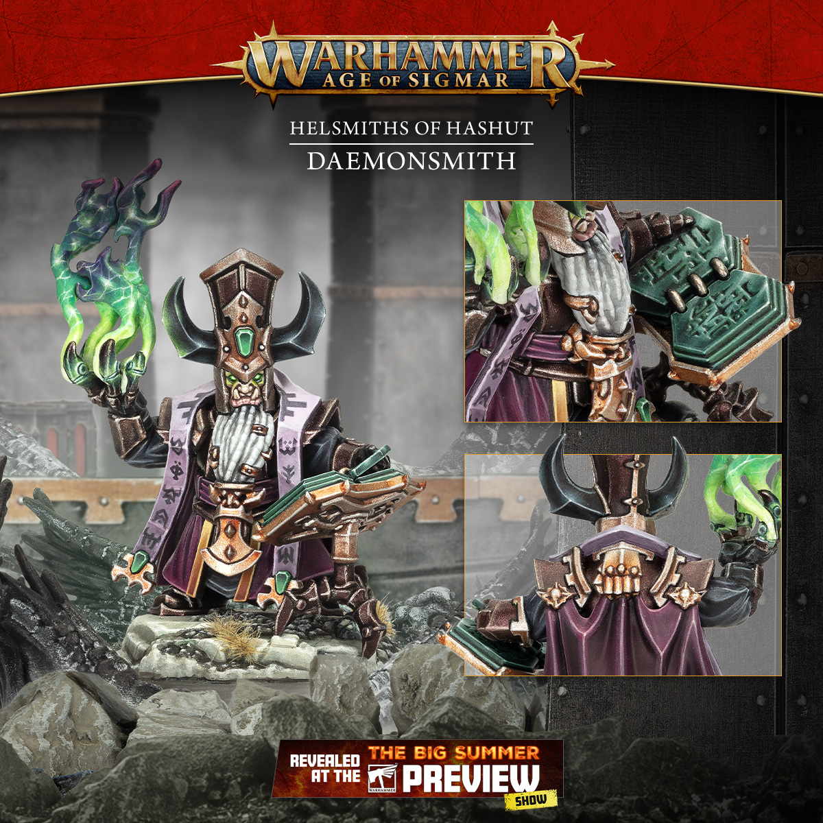 We shall get a peek at more of the characters coming to the Helsmiths of Hashut, starting with the cackling Daemonsmith.
