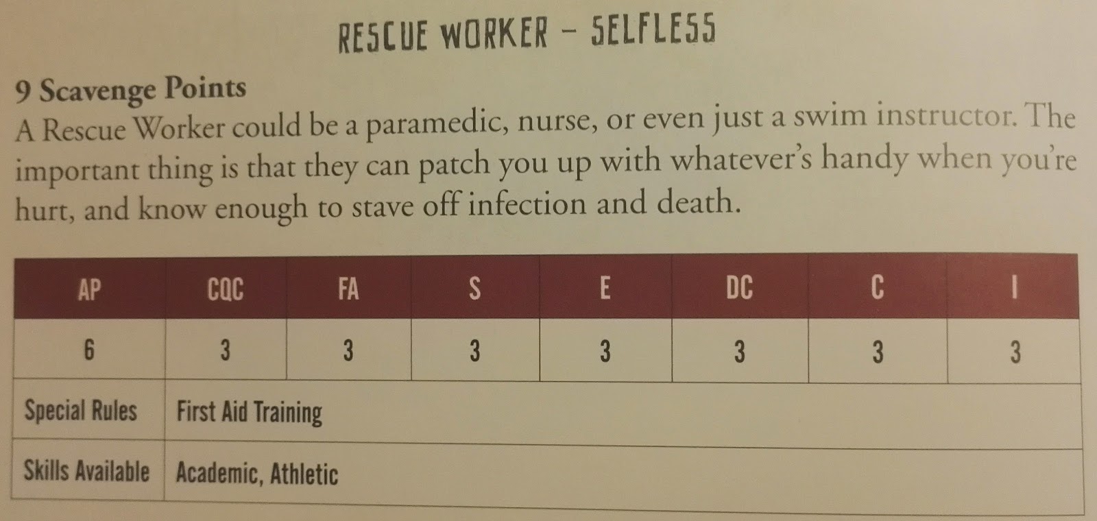 The best part is that the survivors basicly have a charcater class that givs them some instant backstroy and character. Making for a much more personal game.