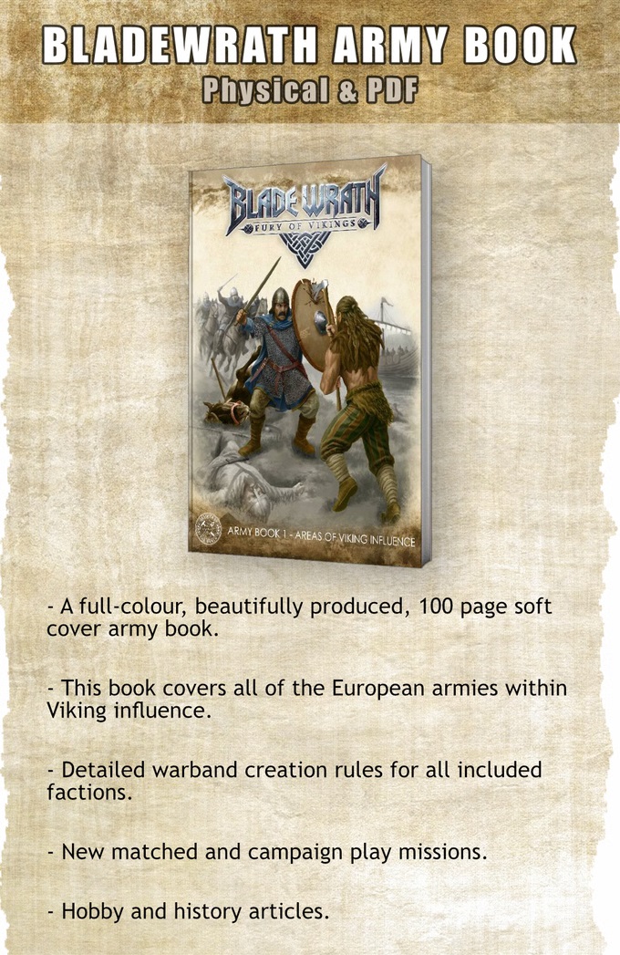 At the core of the game is the new Rulebook, which contains all of the core rules for Blade Wrath, plus rules for making your warbands, including four Viking subfactions and six unique warband types. This is then backed up by the Army Book, which gives you more options for playing the different armies that would have battled against the Vikings during this age.