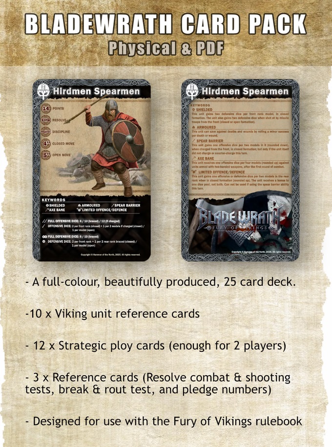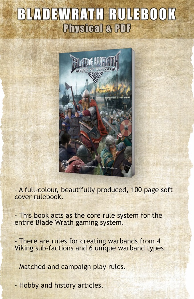 Blade Wrath has been designed as a mass skirmish wargame that reflects the raids and conquests that took place in Scandinavia during the Viking Age. The game is based on the author's experience as a reenactor as well as a wealth of historical knowledge, researched to help replicate the raid-sized battles of the Viking era.