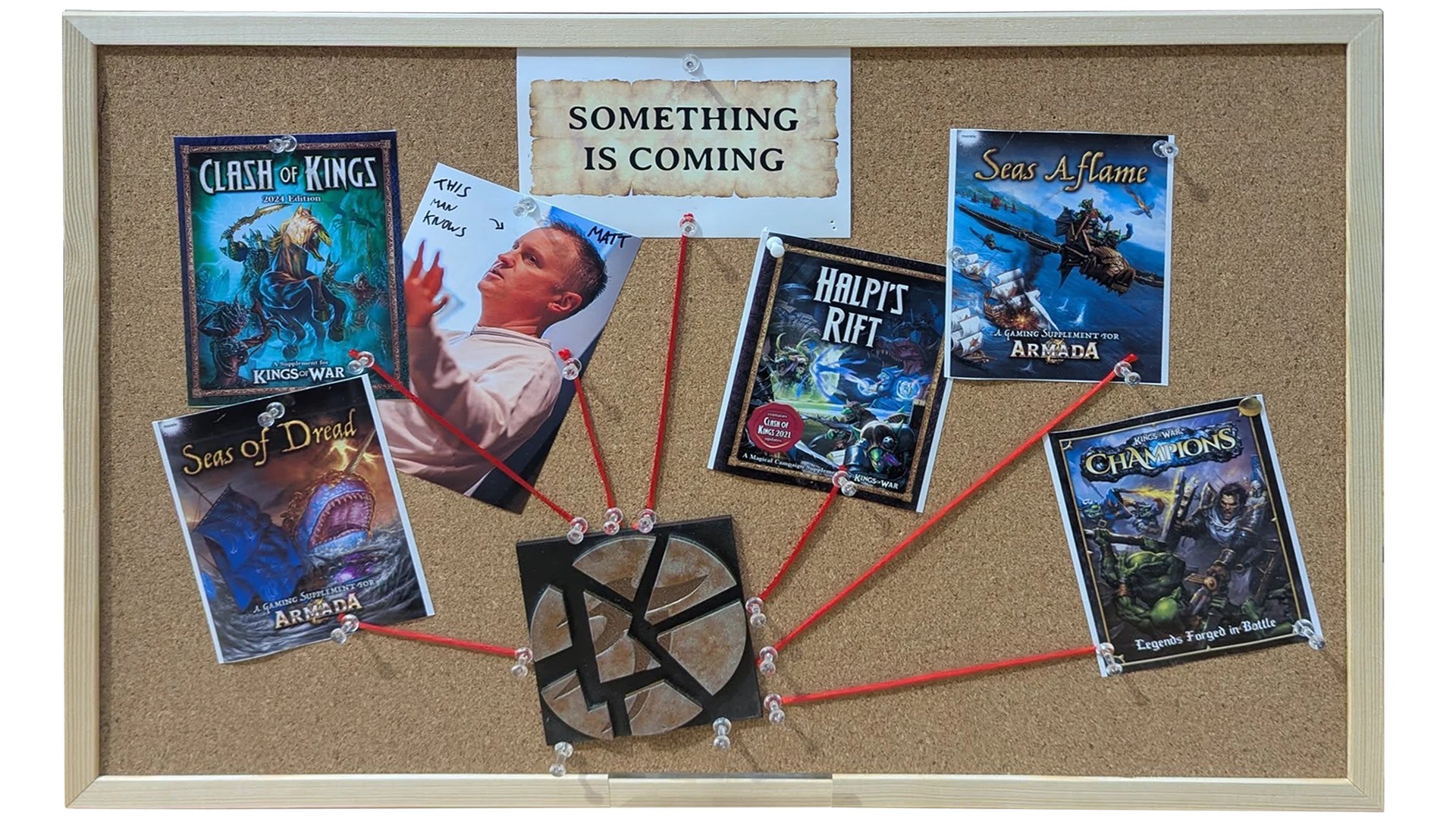 ...and there are going to be a lot of development blogs covering the changes to gameplay, the different phases of the game, stories, army building and more. This is a good dive into the world of Pannithor and what previous editions and this new edition are bringing to the tabletop. I'm sure that someone will be able to decipher that board of clues!