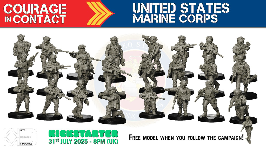 White Dragon Miniatures will be on Kickstarter soon with their new campaign for their Modern Courage in Contact range. The US Marine Corps are next up with a full platoon hitting crowdfunding starting on 31st July 2025.