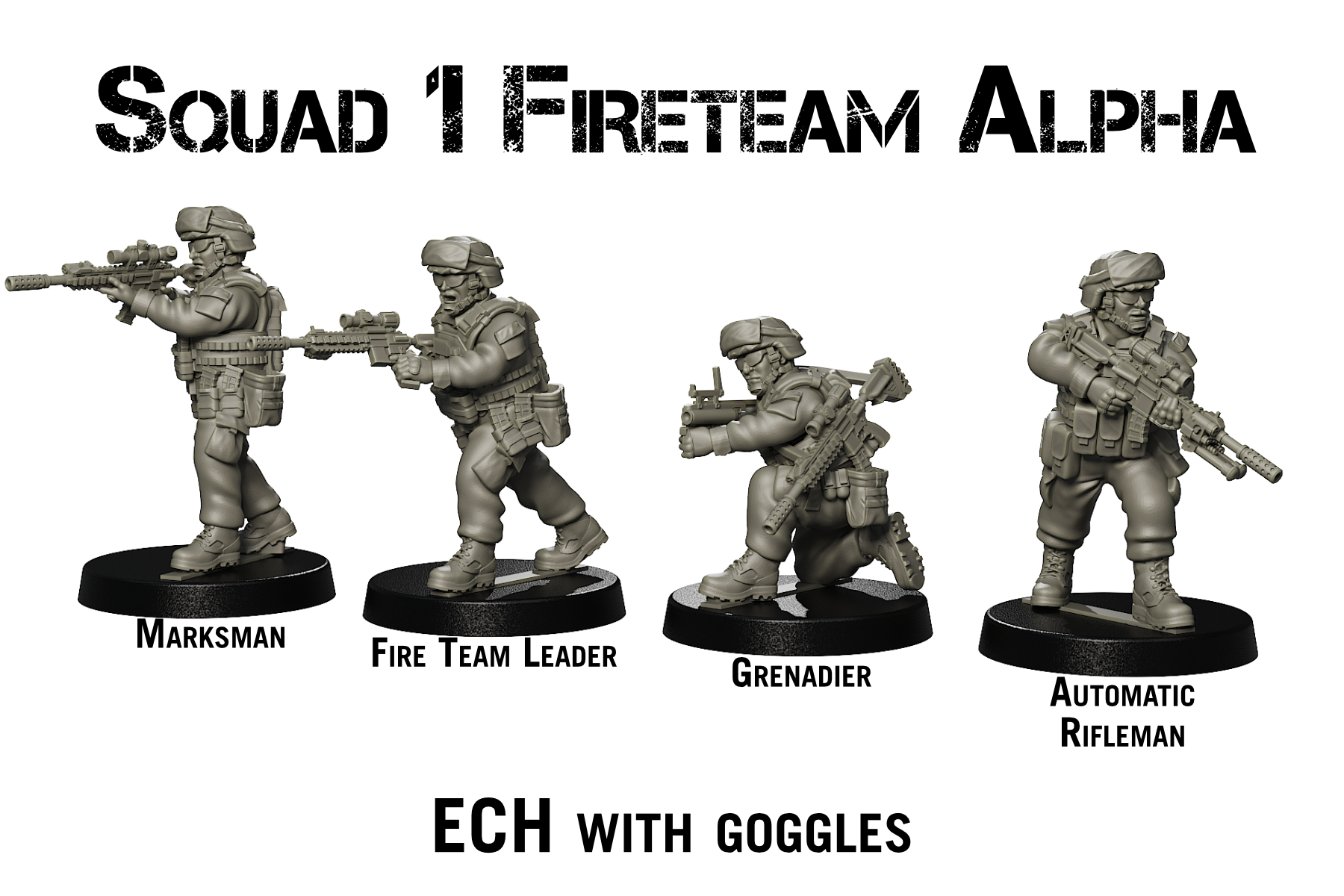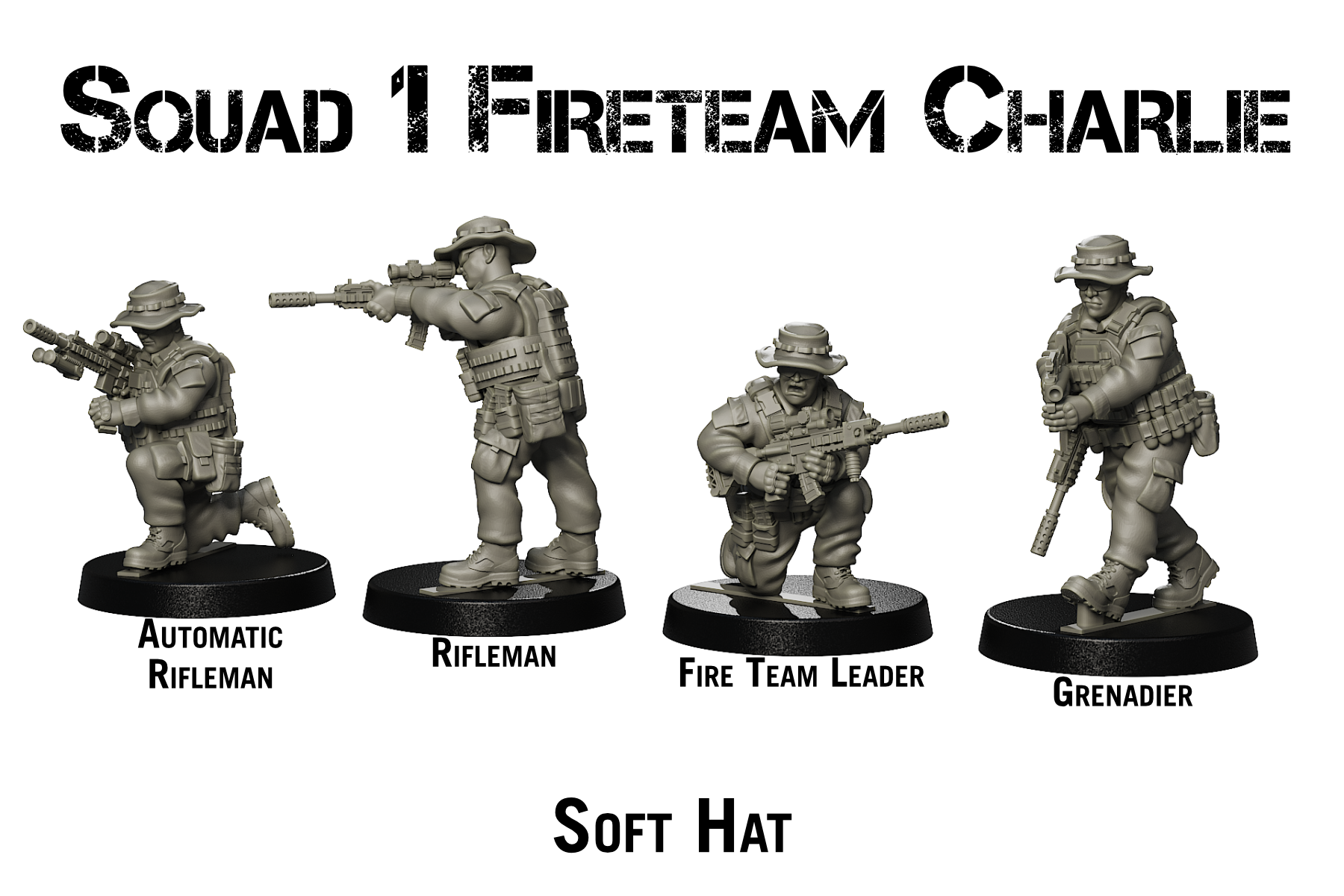 As you might have guessed, you get a bunch of regular soldiers as well as your HQ options as you can see above. White Dragon Miniatures were kind enough to show off more of the miniatures that you'll be able to get as part of the campaign, spread across different Fireteams.