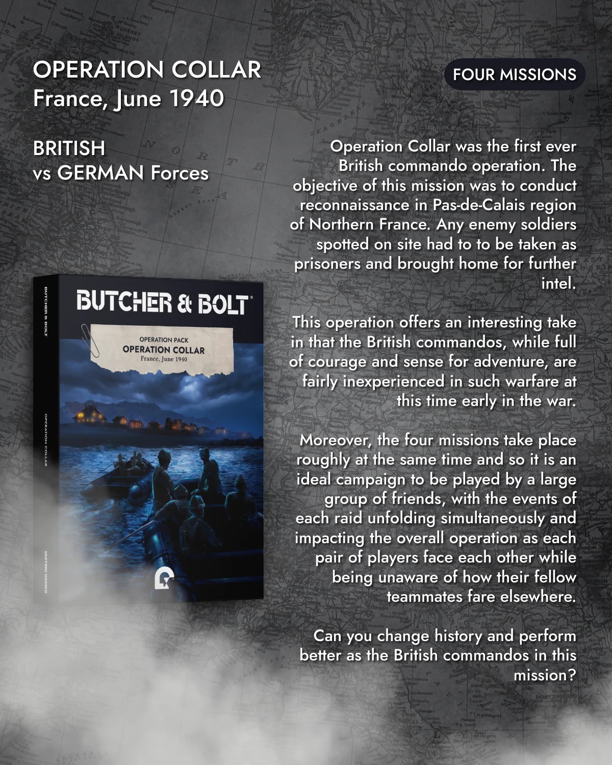 Lasting Games has fired up their Gamefound for their World War II command skirmish game, Butcher & Bolt. You can now dive in to pick up the rules, plus their special Operation Packs that allow you to play our missions from a variety of different theatres of war.