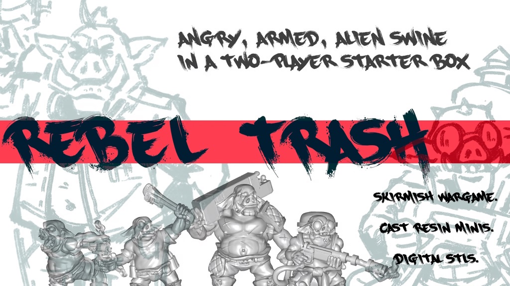 Slade Stolar is on Kickstarter right now with their new project, Rebel Trash, which sees Alien Swine battling it out in a fun, quick, 28mm scale Sci-Fi skirmish game. You'll be able to get your hands on all of the rules, plus some nice figures by Warp Miniatures!