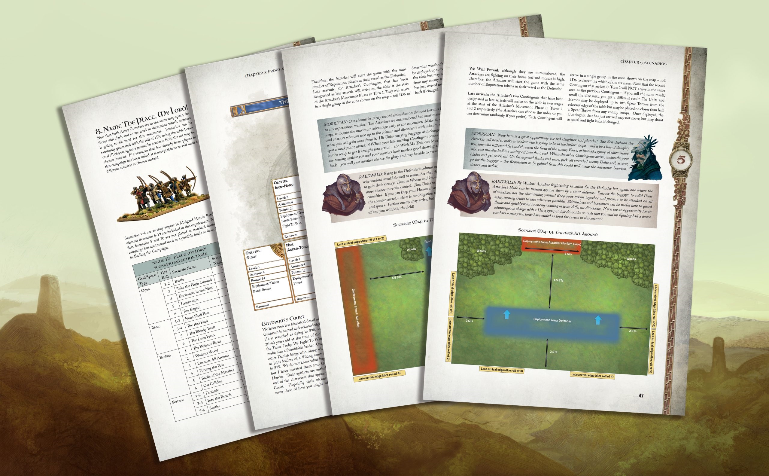 Chronicles of Midgard adds new, fast-moving narrative campaigns to your games of Midgard Heroic Battles, where you fight through fifteen new and challenging scenarios. At the core of this is a simple map-based campaign that has you focus on the heroic deeds of two Courts of Heroes as they compete for renown on the battlefield. This allows you to play out awesome campaigns in Historical or Fantasy settings, whatever works best for you.