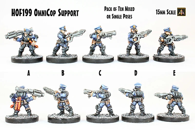 Alternative Armies recently added some 15mm Sci-Fi miniatures to their Hordes of the Future range. You can lay down the law with some of their OmniCops who come armed with all sorts of different weapons and loadouts.