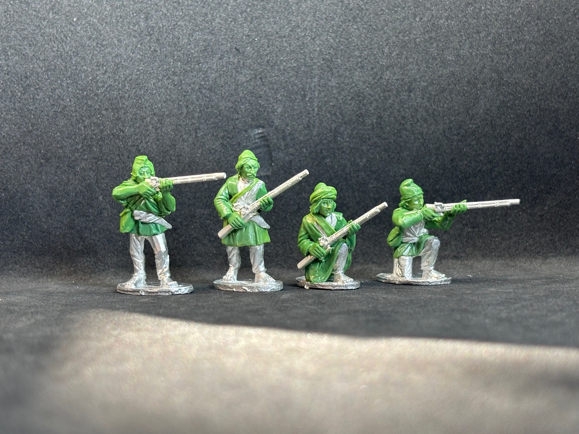 These newly sculpted irregulars by Paul Hicks represent the local auxiliary forces, tribal levies, and regional militias who played a key role in the conflict, often operating outside of formal line units. The miniatures are armed with Khukuris —seen raised in charging poses—representing the lethal close-combat capability of these fighters. Often used in tandem with muskets for brutal assaults.