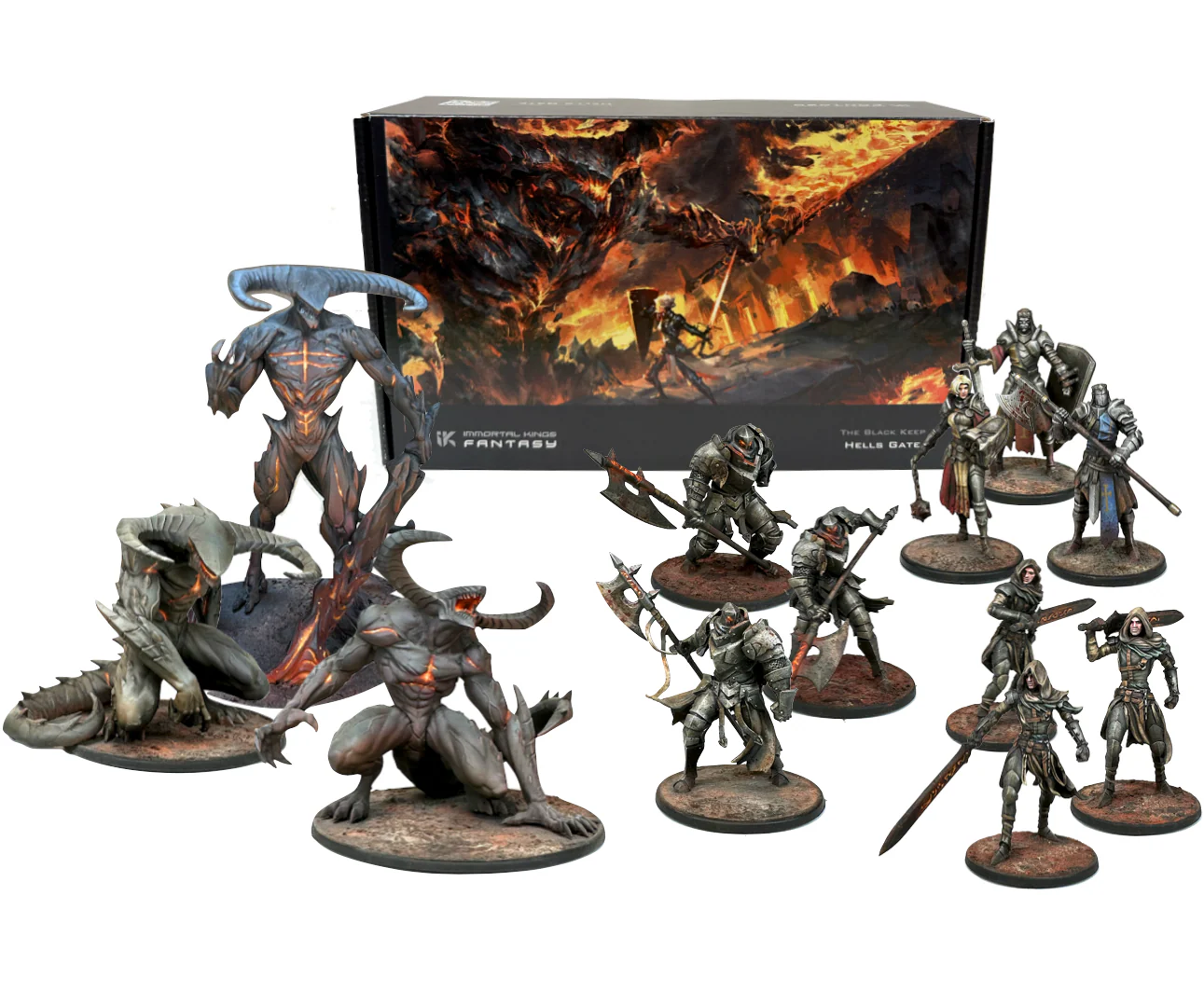 However, Immortal Kings does have a game that you can play using some of the miniatures from its collection. The Black Keep is available now and is its own self-contained experience, represented in this Game Box for Hell's Gate.