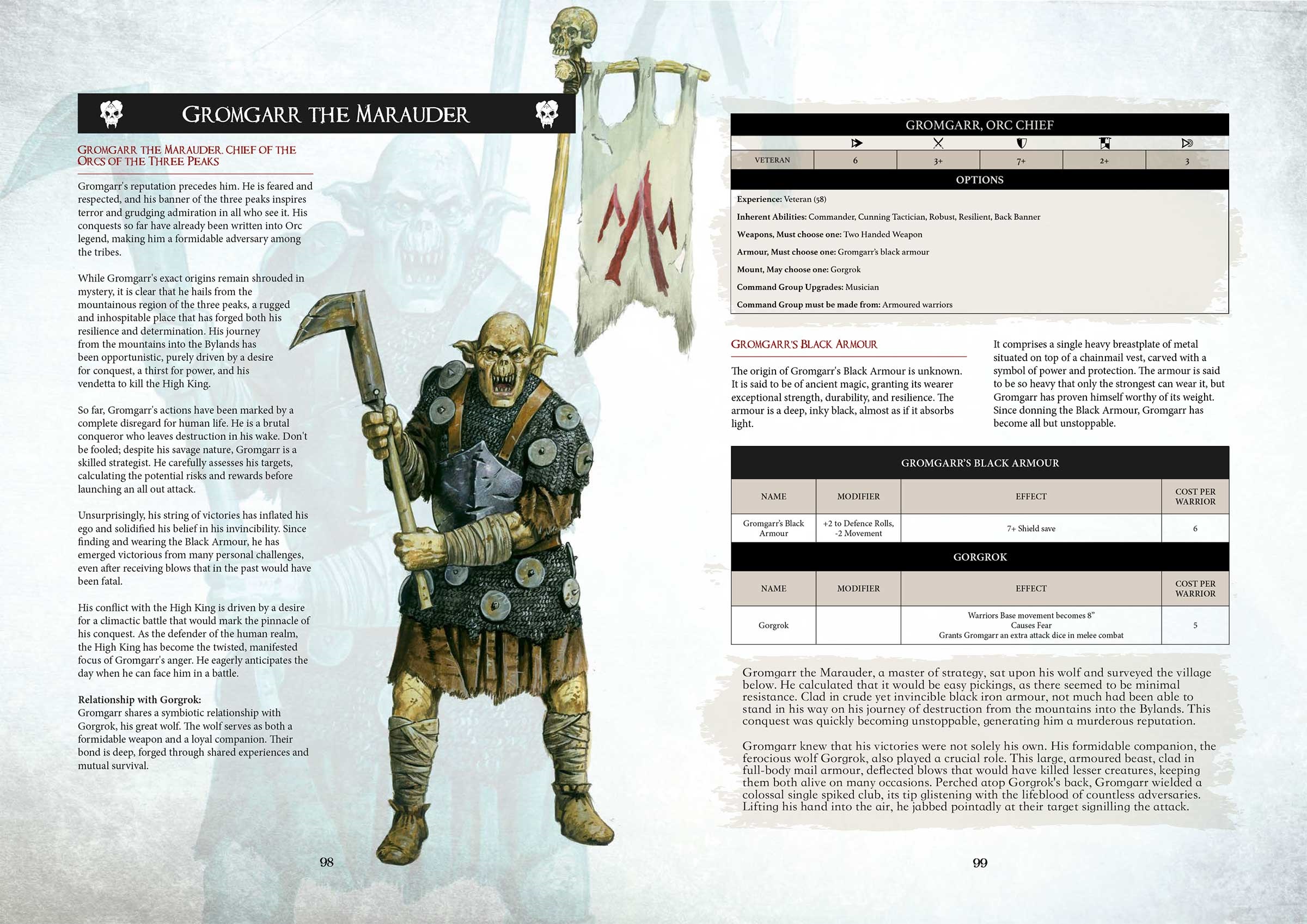 This also means that you'll get to meet mighty heroes and villains like Prince Elarael (above) and Gromgarr the Marauder (below), who head up these different factions and their twisting fates. Such fates play out as part of the Battle for the Bylands campaign, which takes place over the course of three interconnected scenarios.