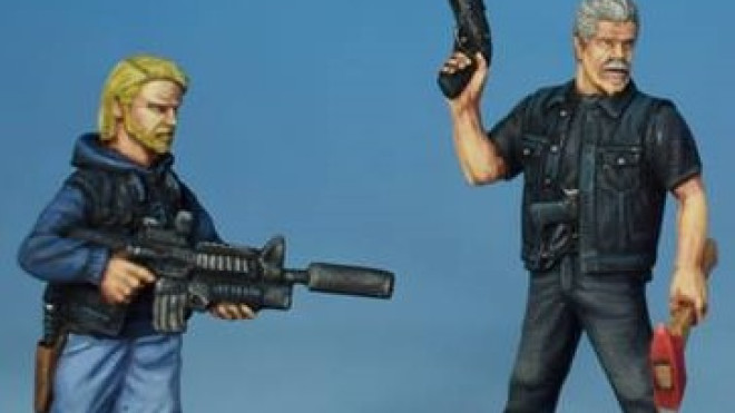 Studio Miniatures have previewed more of the models that will be releasing soon. These all have a very gang land flavour to them, starting with this mean looking Biker Gang.