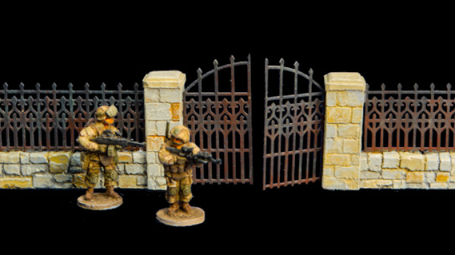 GameCraft have released a new piece of 20mm scale terrain for your boards, a stone wall topped with iron railings and complete with imposing metal gate.