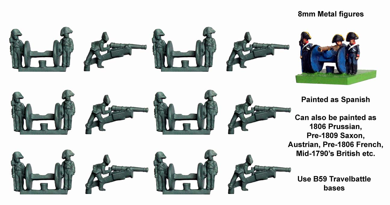 These crews with their Bicornes are designed to work as the Spanish (as you can see here) but could also be Prussians, Saxons, Austrians, French and British from an earlier period. Another set of nice options for those seeking to add some diversity to their existing Travelbattle collection.