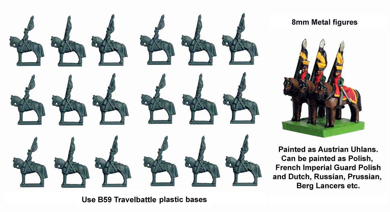 These here have been painted as the Austrian Uhlans but also as the Polish, French Imperial Guard Polish and Dutch, Russians, Prussians and Berg Lancers. You get some nice fellows with lances high, ready to charge into the heart of the enemy.