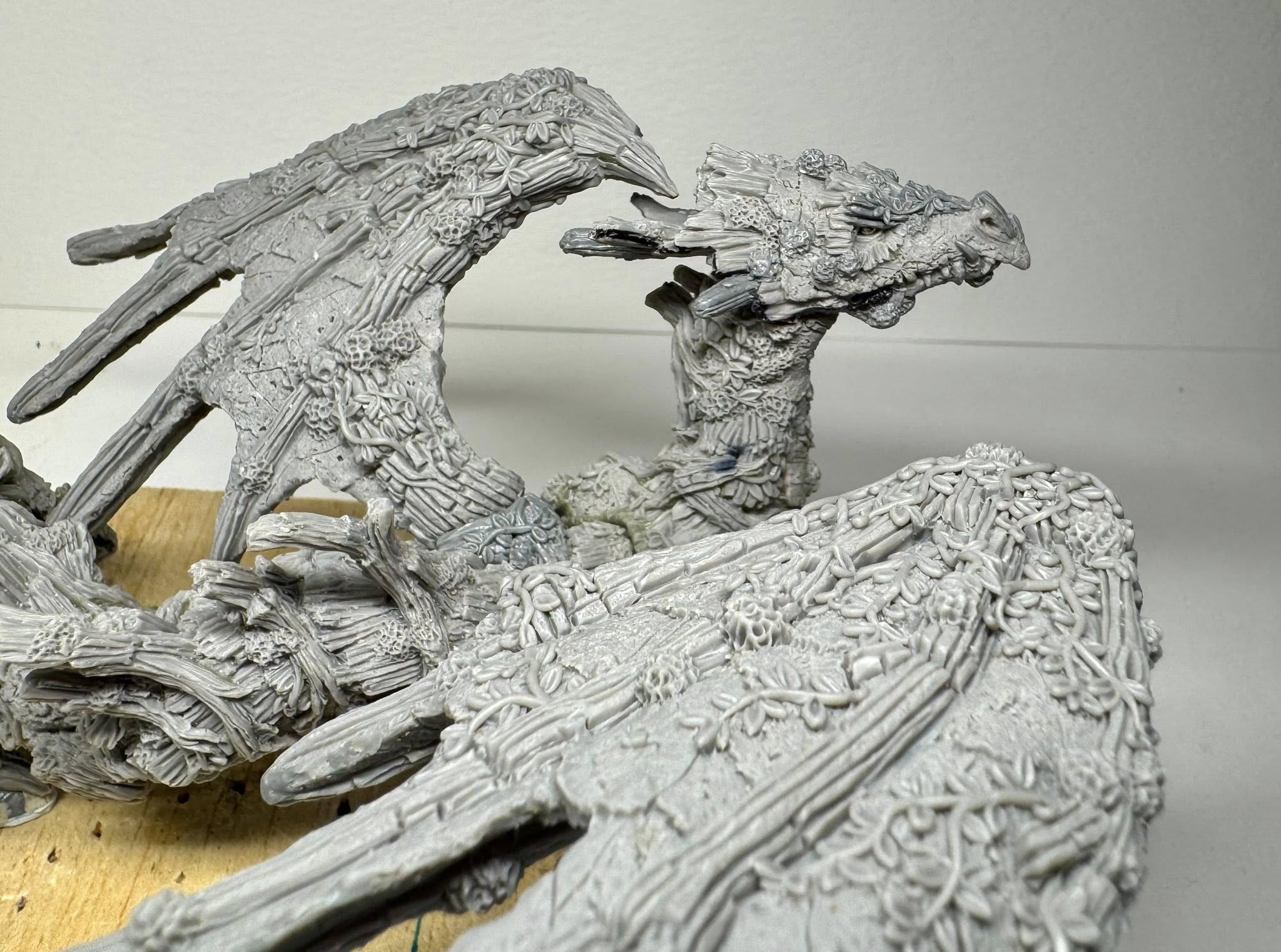 Trish Carden has previewed the first look at her next completed project for the HarrowHyrst range of Fantasy miniatures. Darach the Forest Dragon is going to be stomping out of the woods very soon to scare off interlopers!