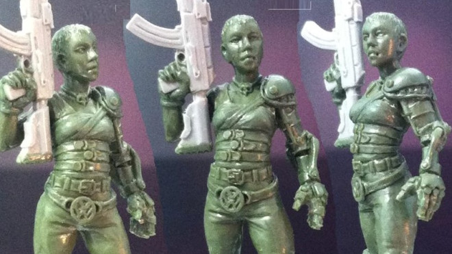 Over on the Hasslfriesian page where a lot of the work-in-progress sculpts pop up for the Hasslefree Miniatures line we got a glimpse of the new Post Apocalyptic Survivor MK I who is a nice nod to Charlize Theron's character in Mad Max: Fury Road, Imperator Furiosa...