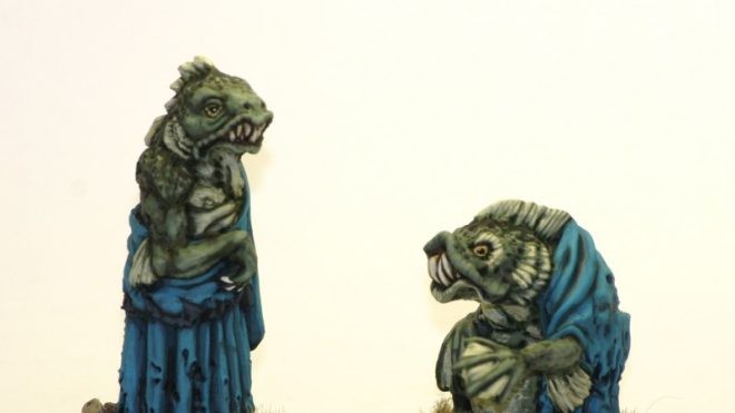 Strange Aeons is a miniatures skirmish game based (in part) on the works of H.P. Lovecraft and other mythos horror writers. Sounds like it might be quite good and these new Fishmen miniatures are definitely quite nice.