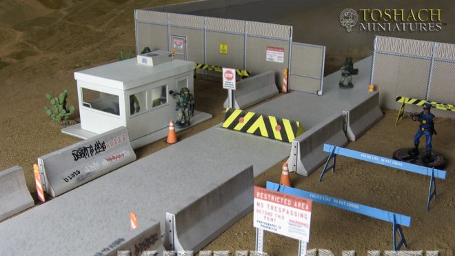 Toshach Miniatures have created a set of dowloadable 3D terrain for a pretty cool road block set.