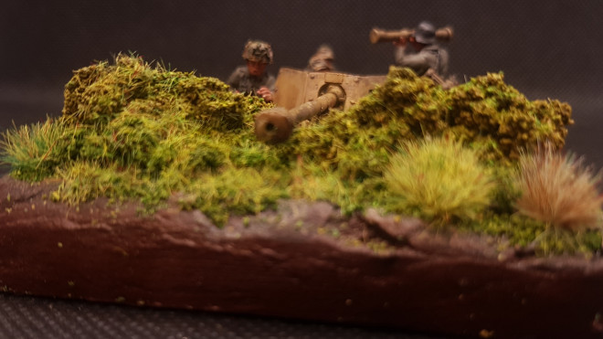 Time to paint up my Warlord Pak 40. The model doesn't quite fit on the large round base so I decided this would be a good opportunity to try my hand at a scenic base.