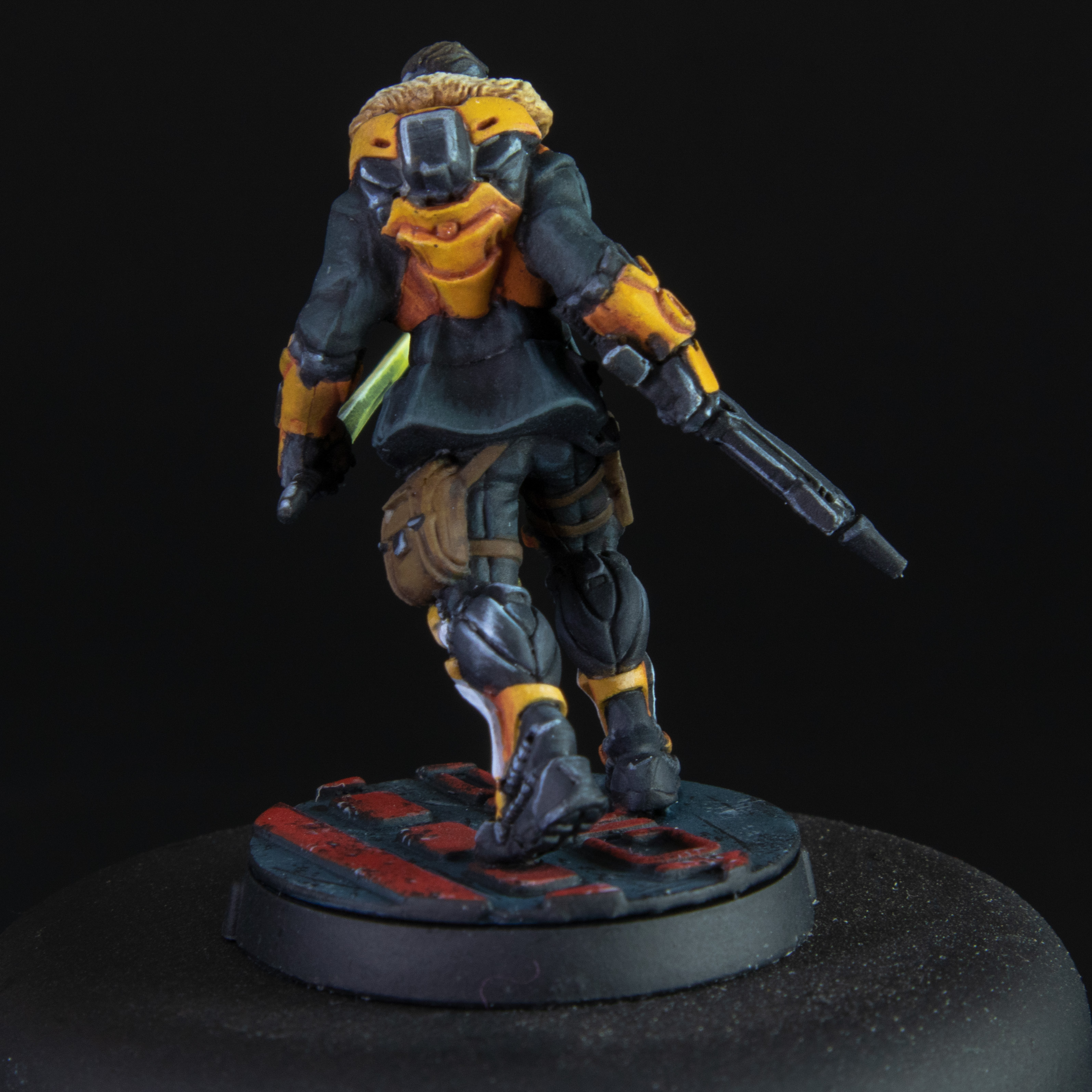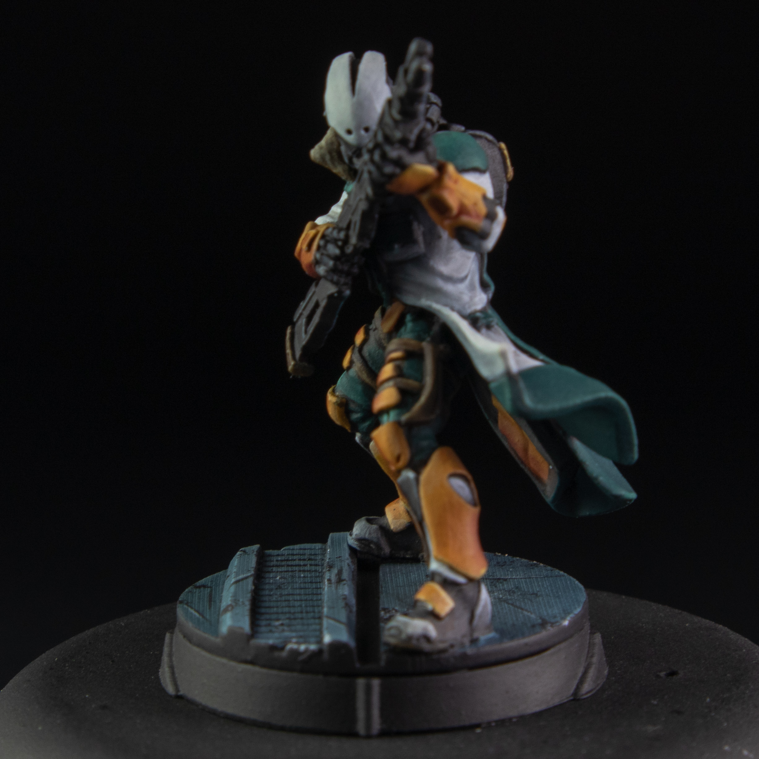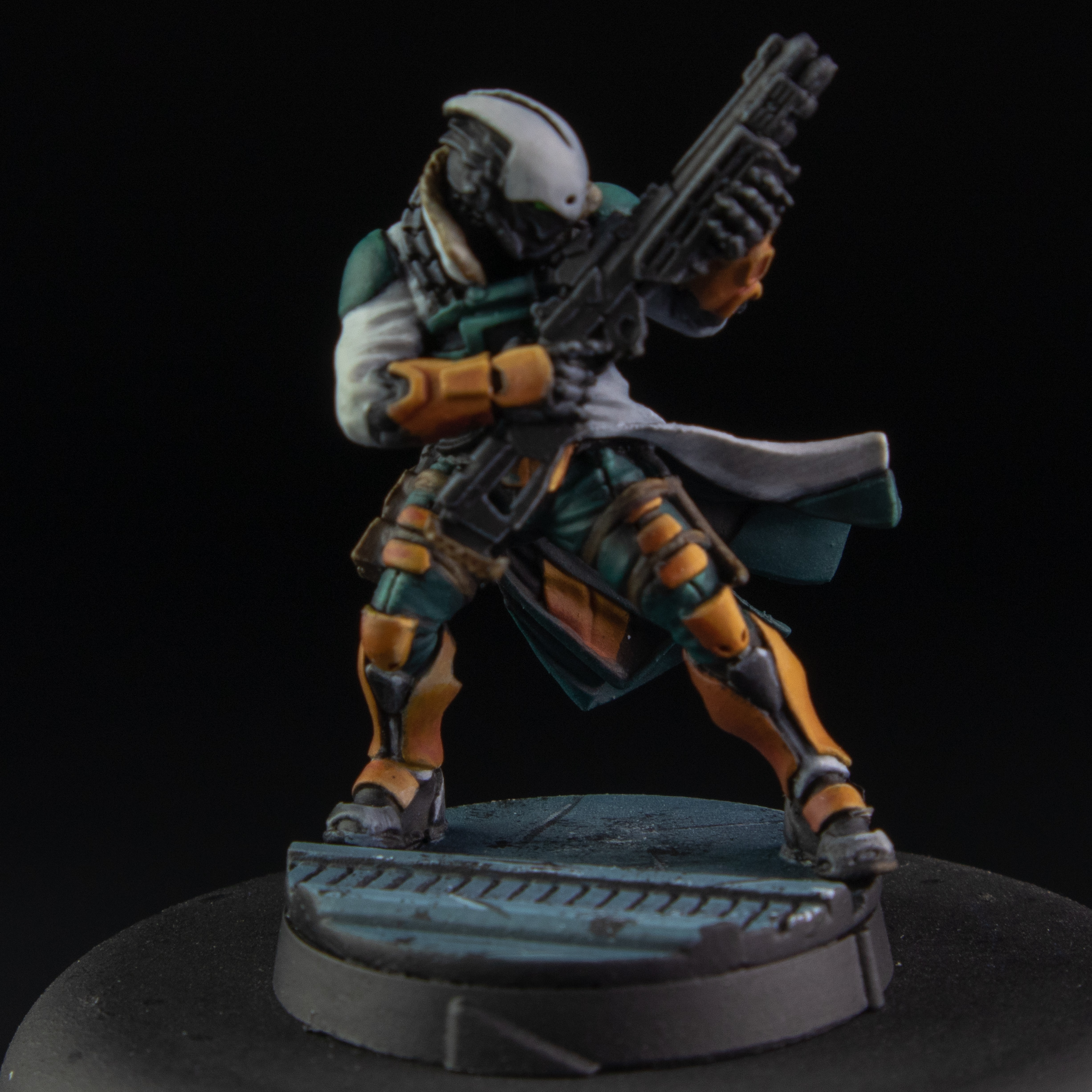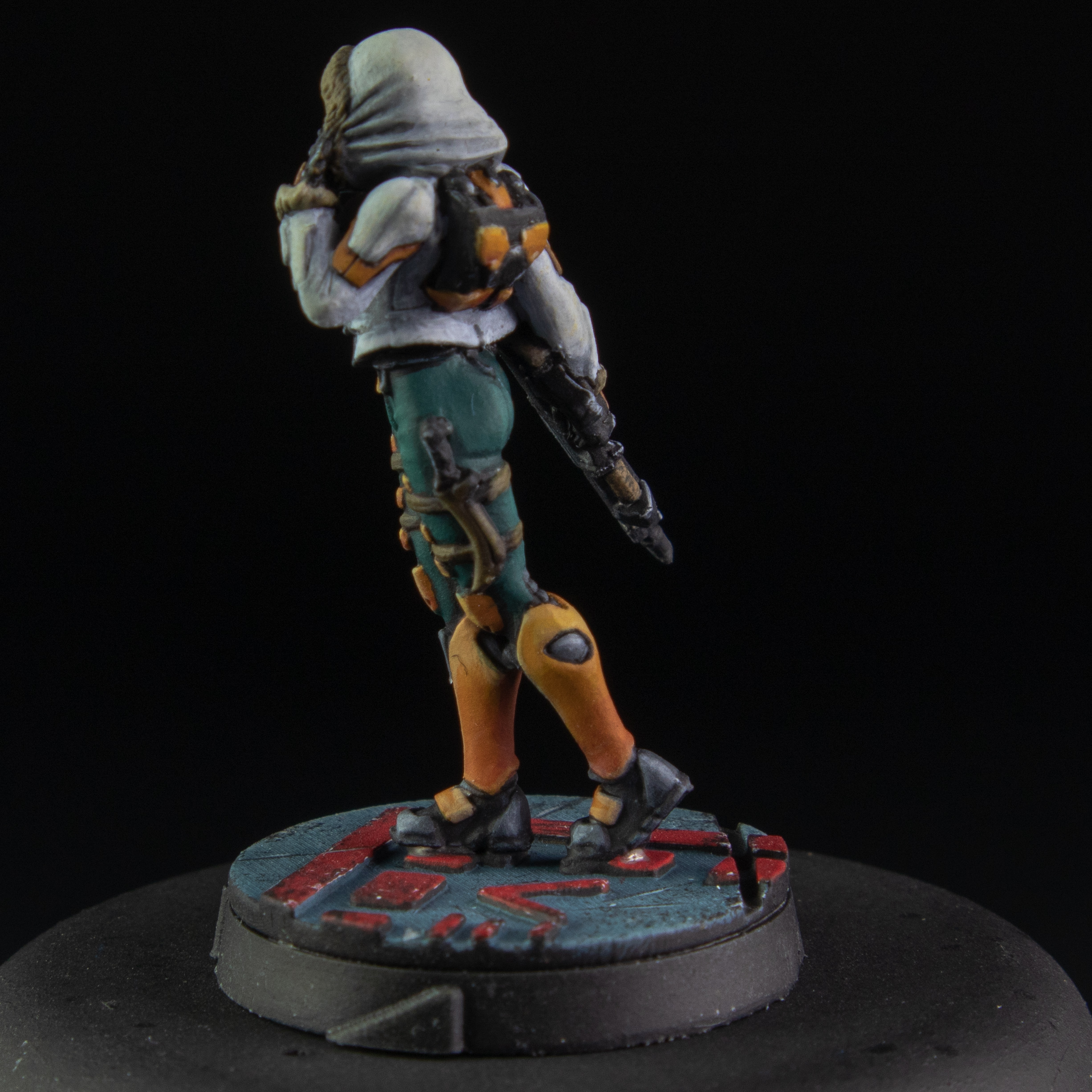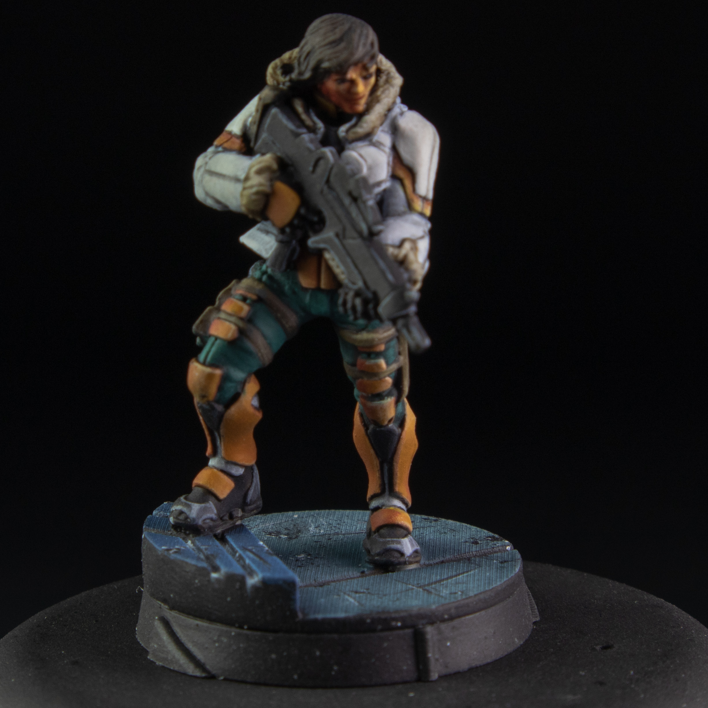 Weird thing happened while I was viewing these while painting was some of the details are missing off of the models. I am seeing this more and more looking closely at the official models some of the textures and details are either way softer or removed completely. For example Cuervo Goldstein’s calves they should have the blue hex webbing pattern on them. On my model they were completely smooth. I certainly didn’t thick coat them to obscure the detail or file it off. Nothing major and still love the quality but seeing this more and more from Corvus Belli.
