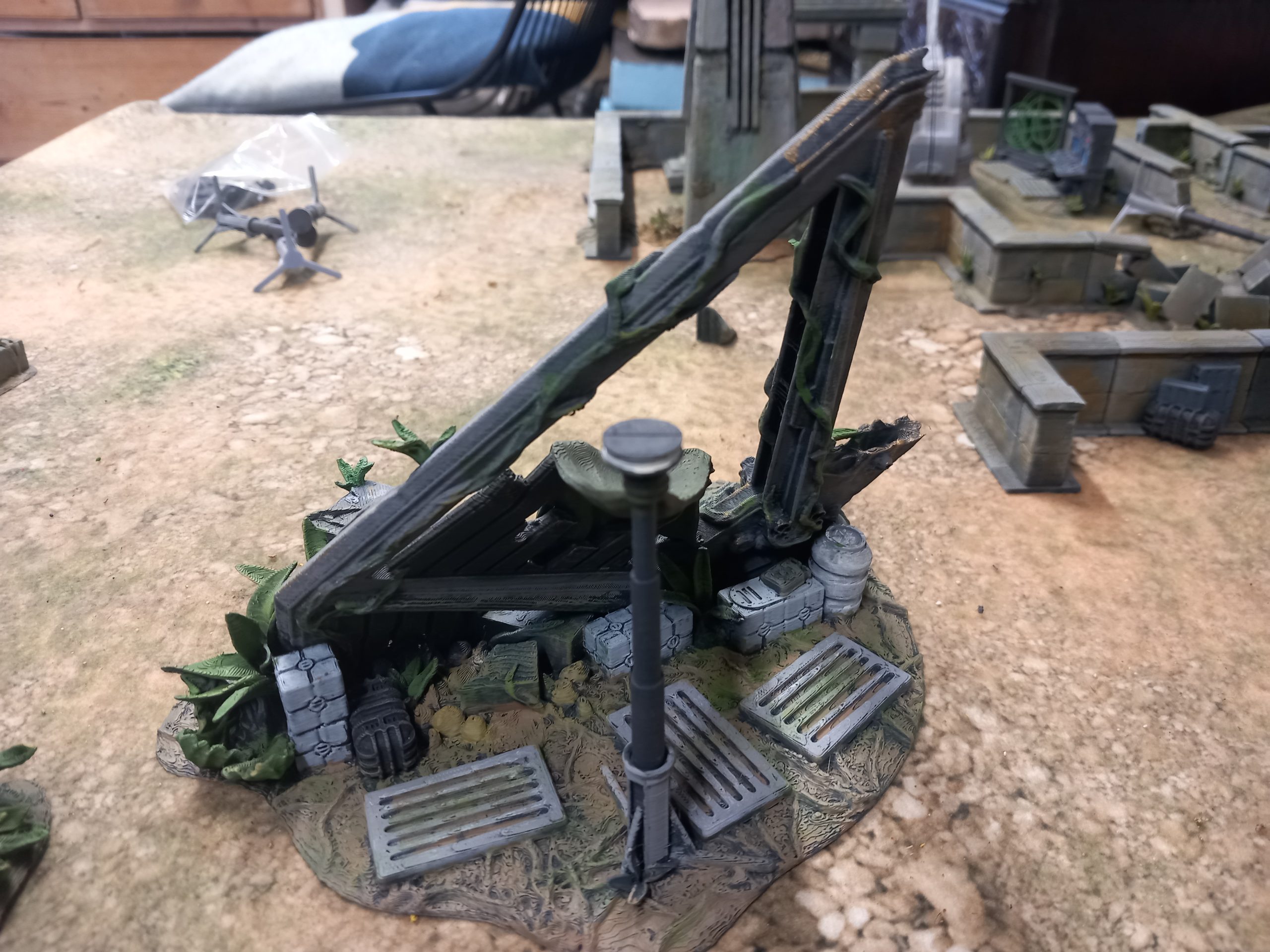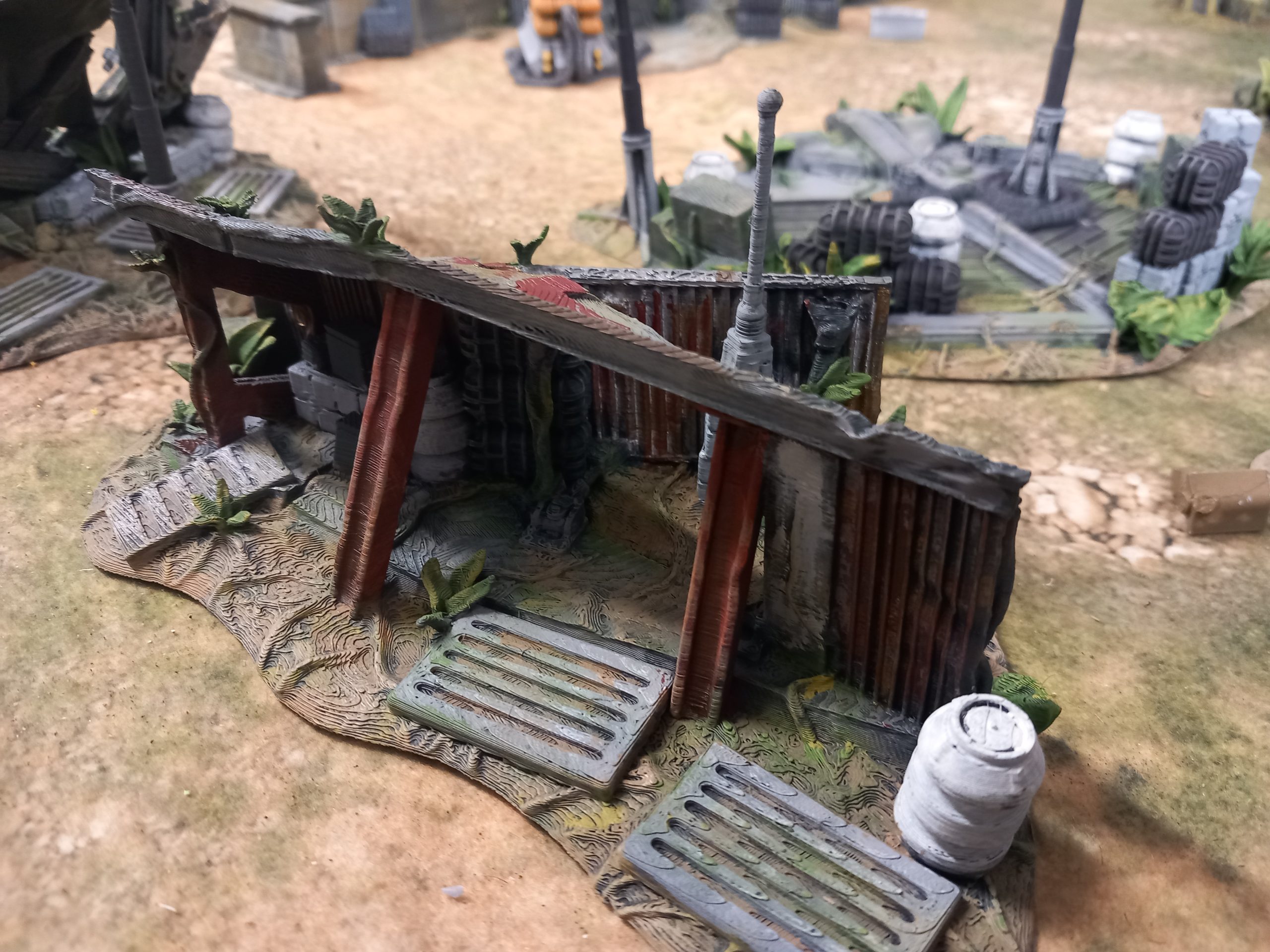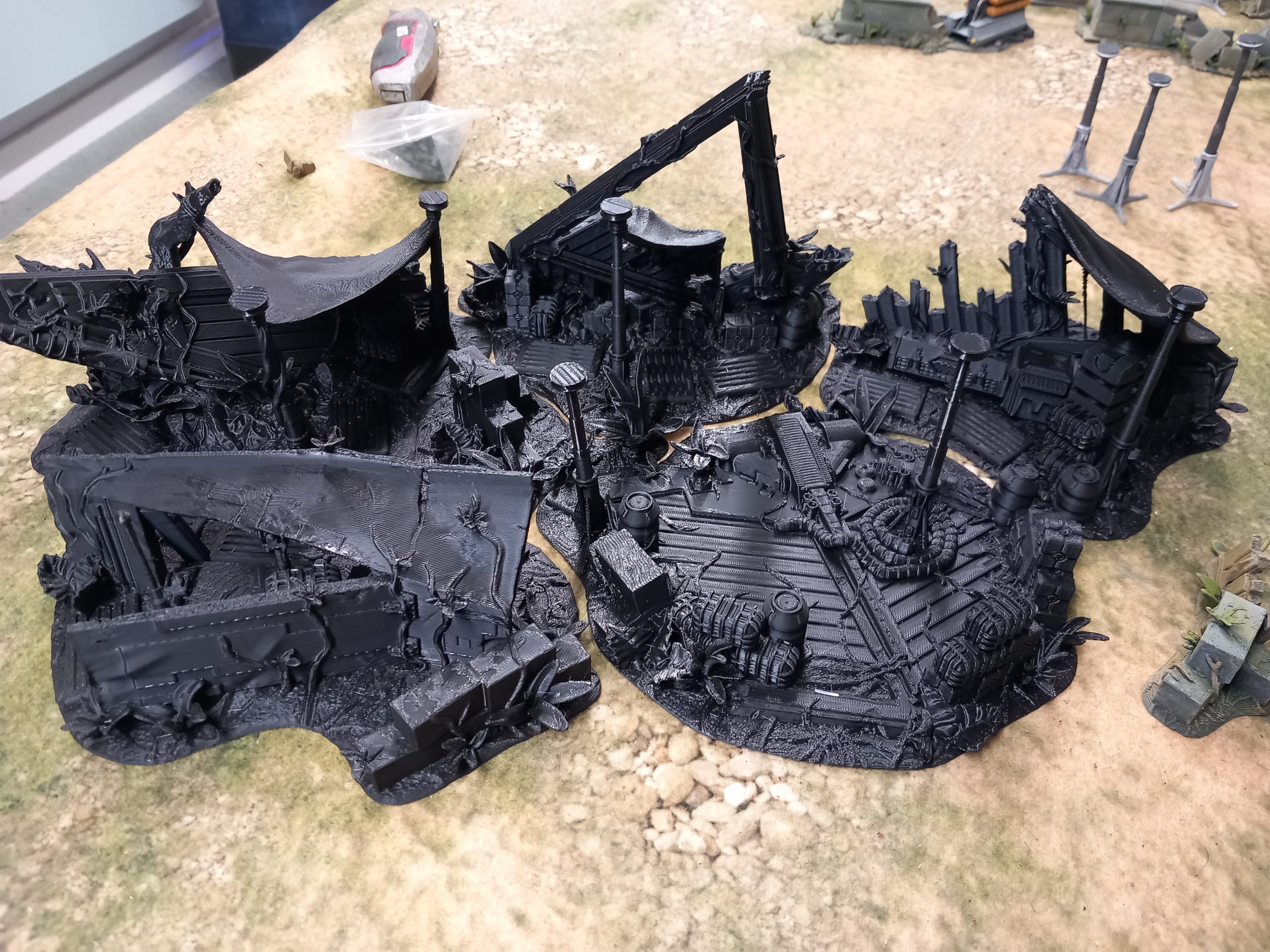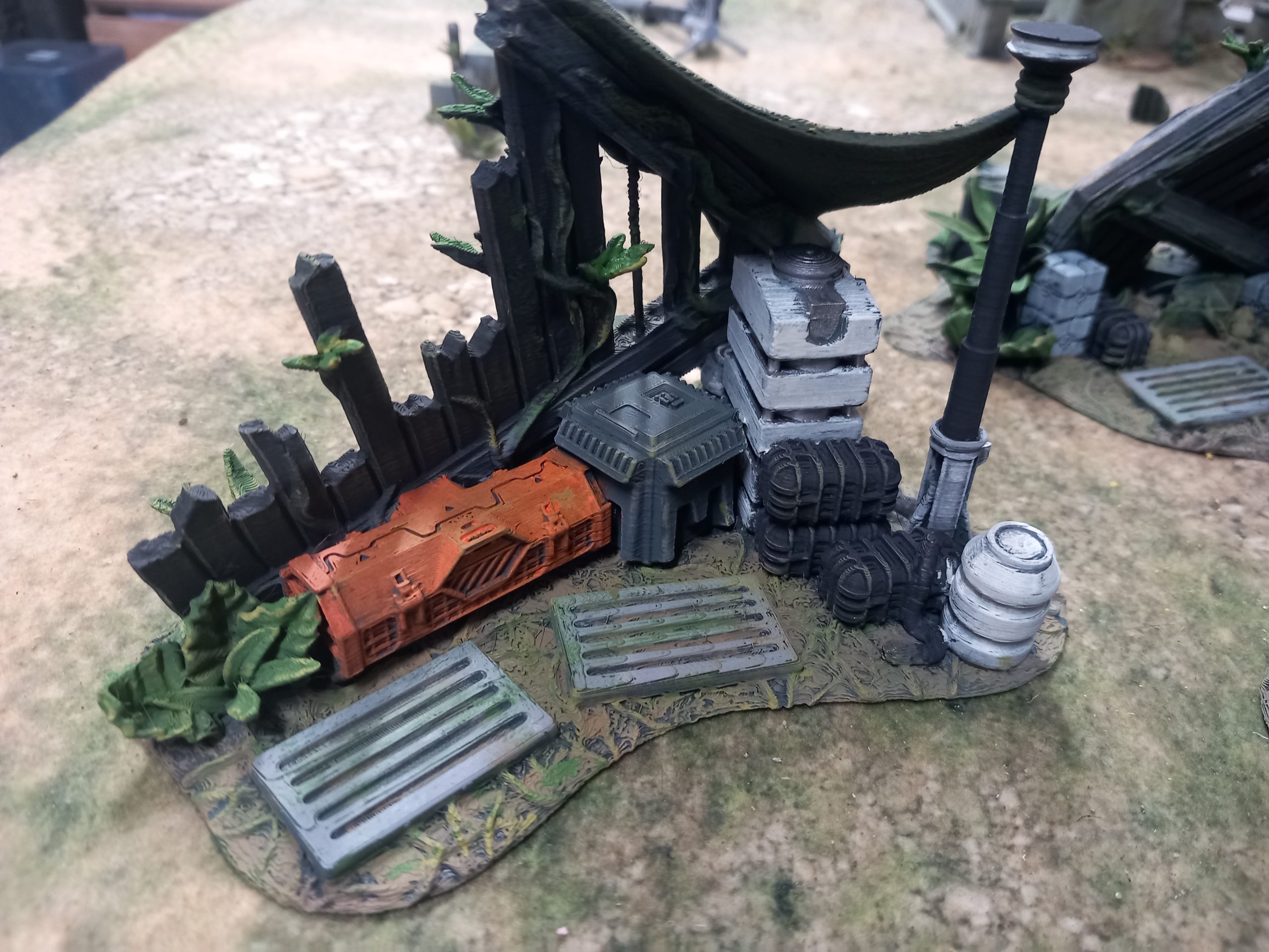My jungle trees from David Sheff models are printed in clip together pieces so you can make them as tall or as short as you like with different branches or stumps. My taller trees are 16 inches high which makes them the tallest trees own. Bit of a task to paint each leaf. I could print out more to make a dense table but they might be hard to play aroundMaking it square
