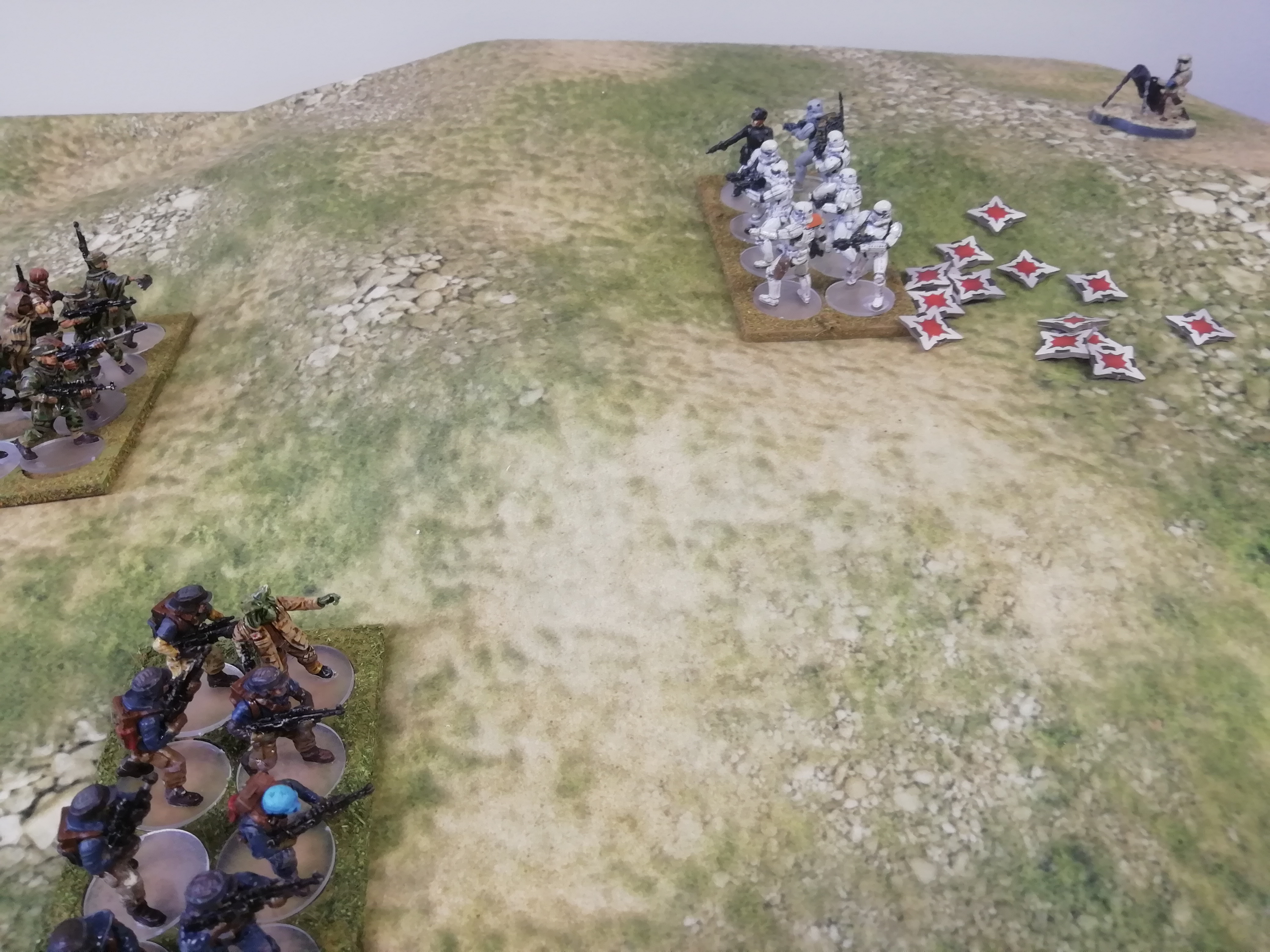 The second battle had vehicles thrown in and the Rebels had to defend a bunker and hill. The empire just need to capture one. IG Droids