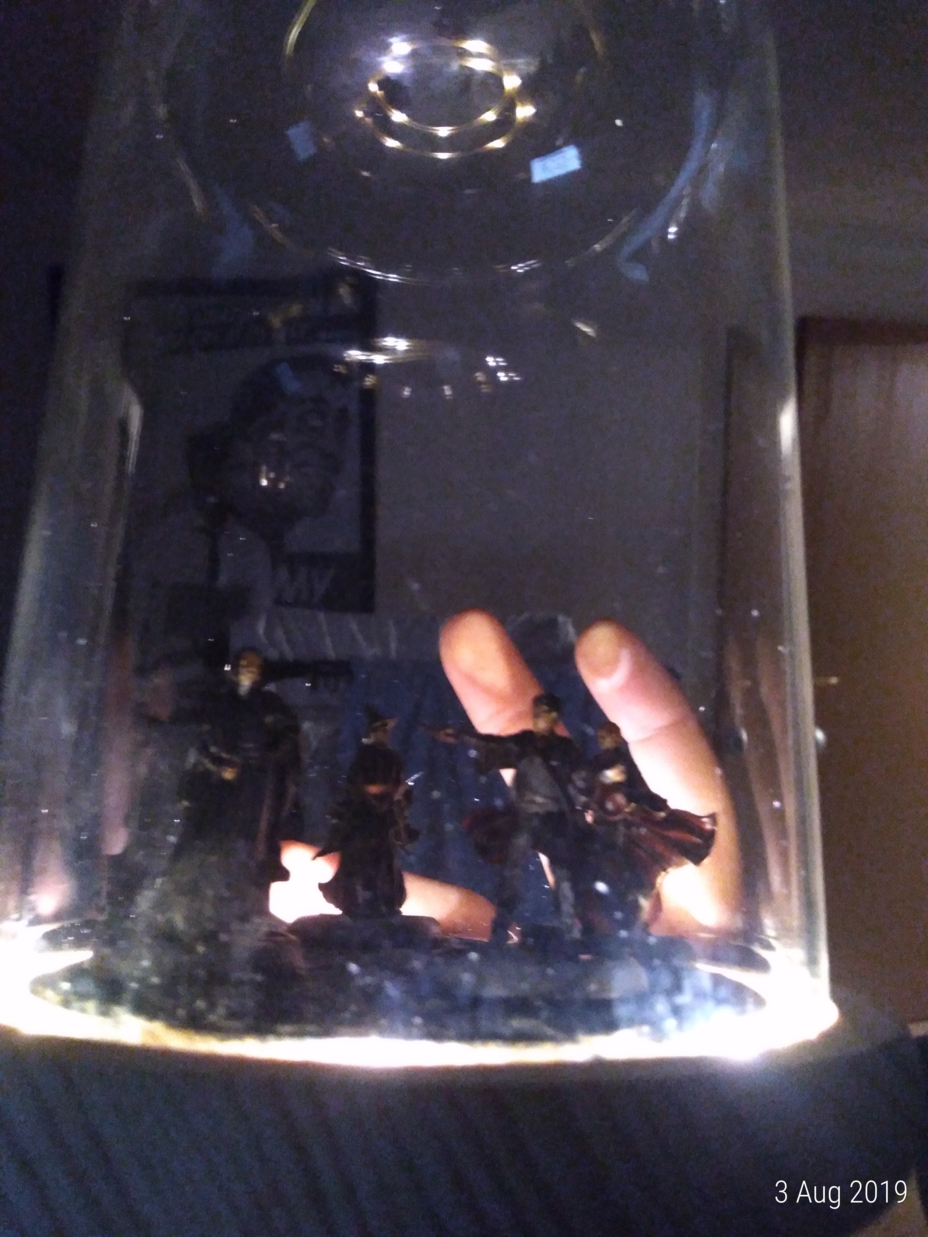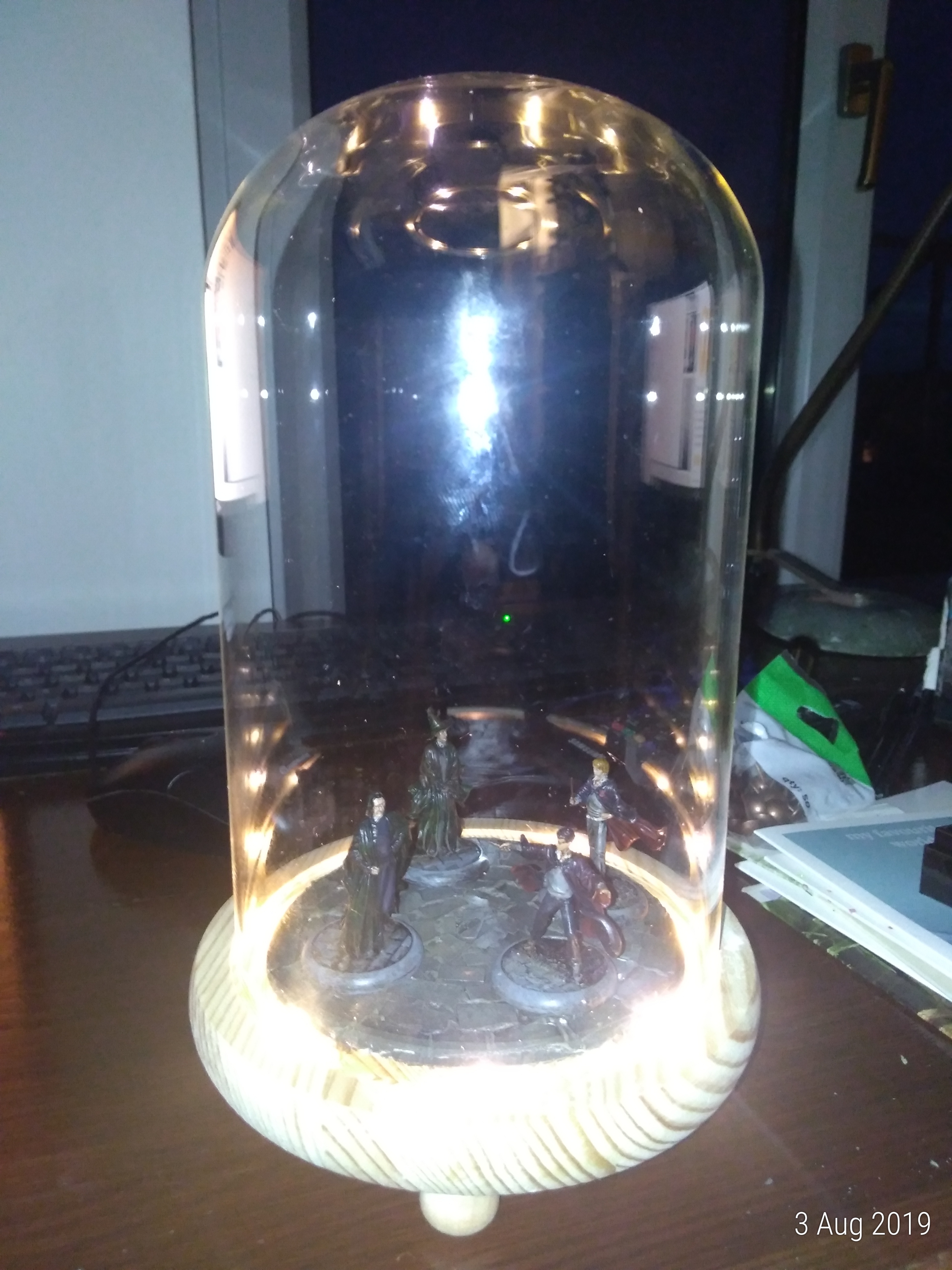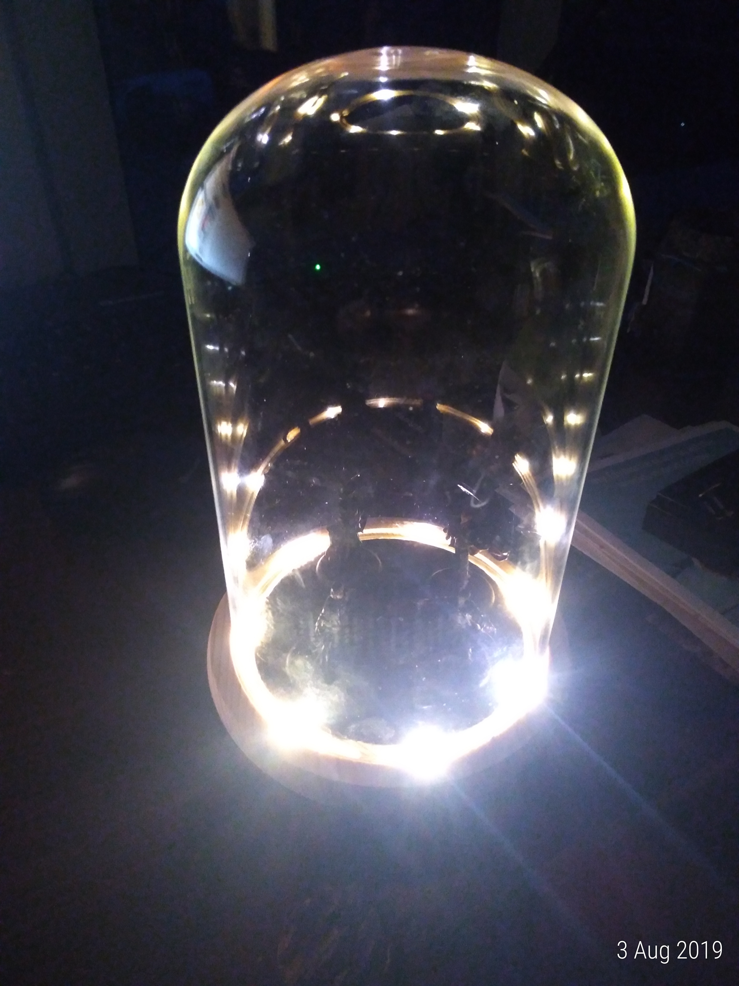I did a tester on the new larger bell jar, which has LEDs which I think will add a very harry potter “lights around the model” vibe whether its magic or illuminating candles etc