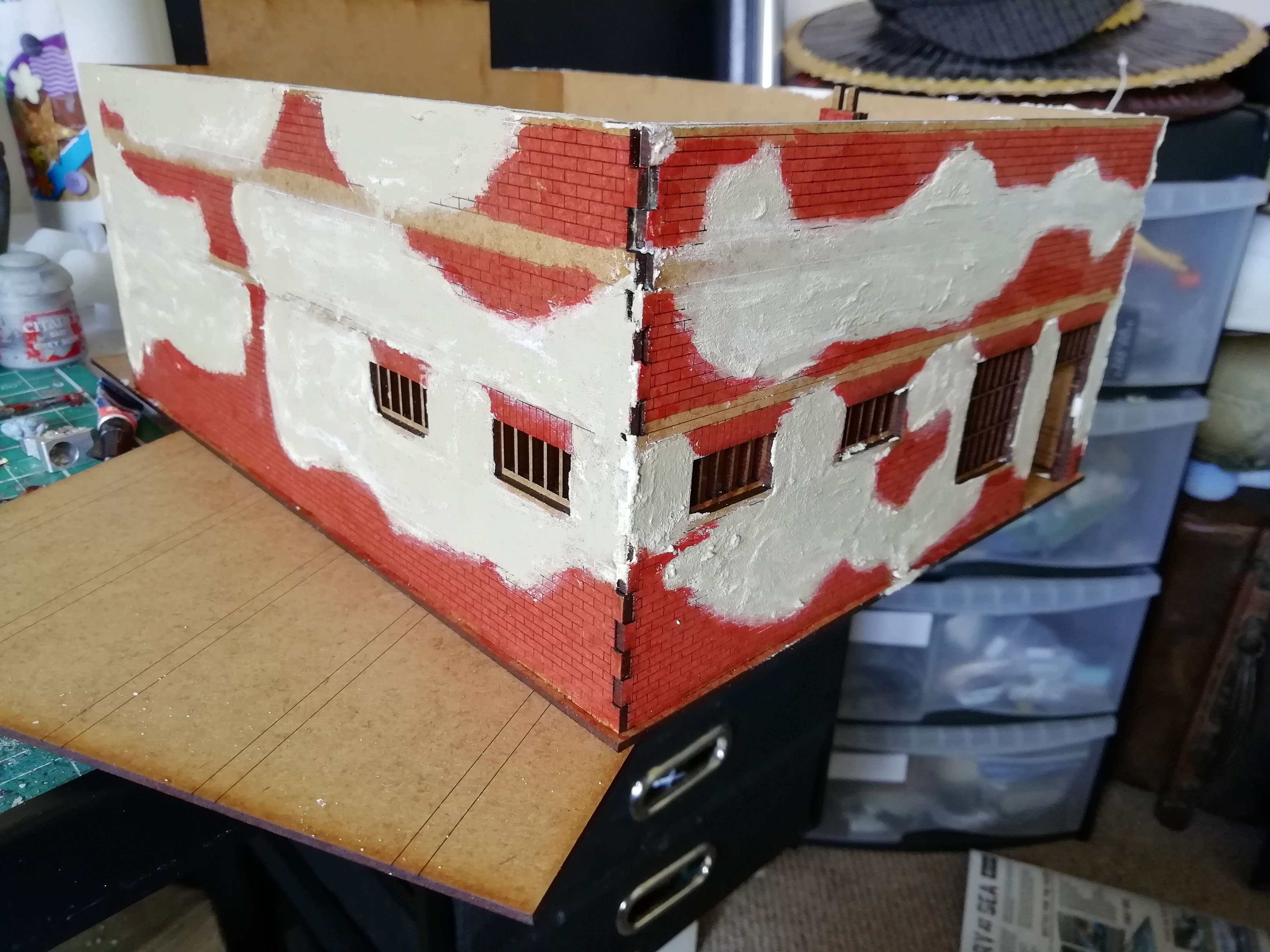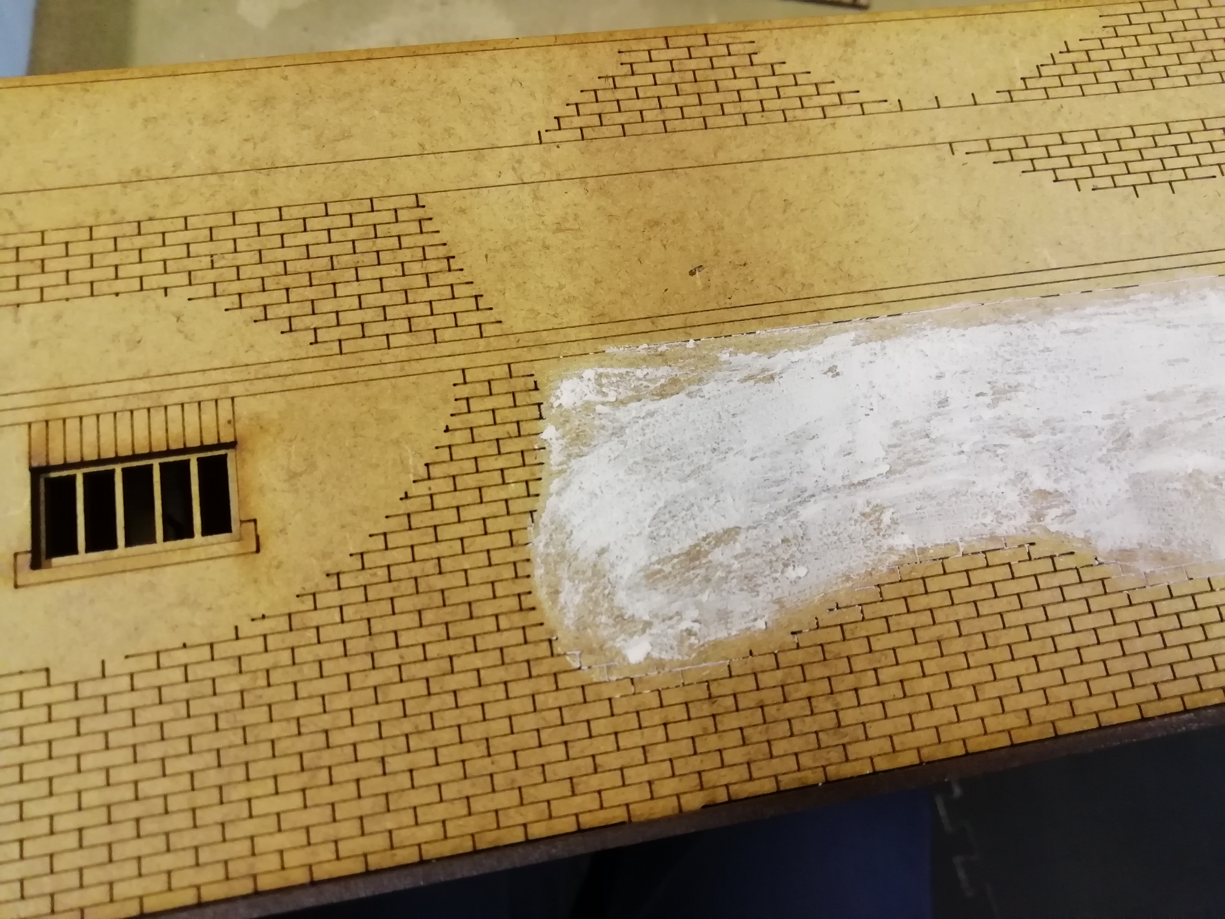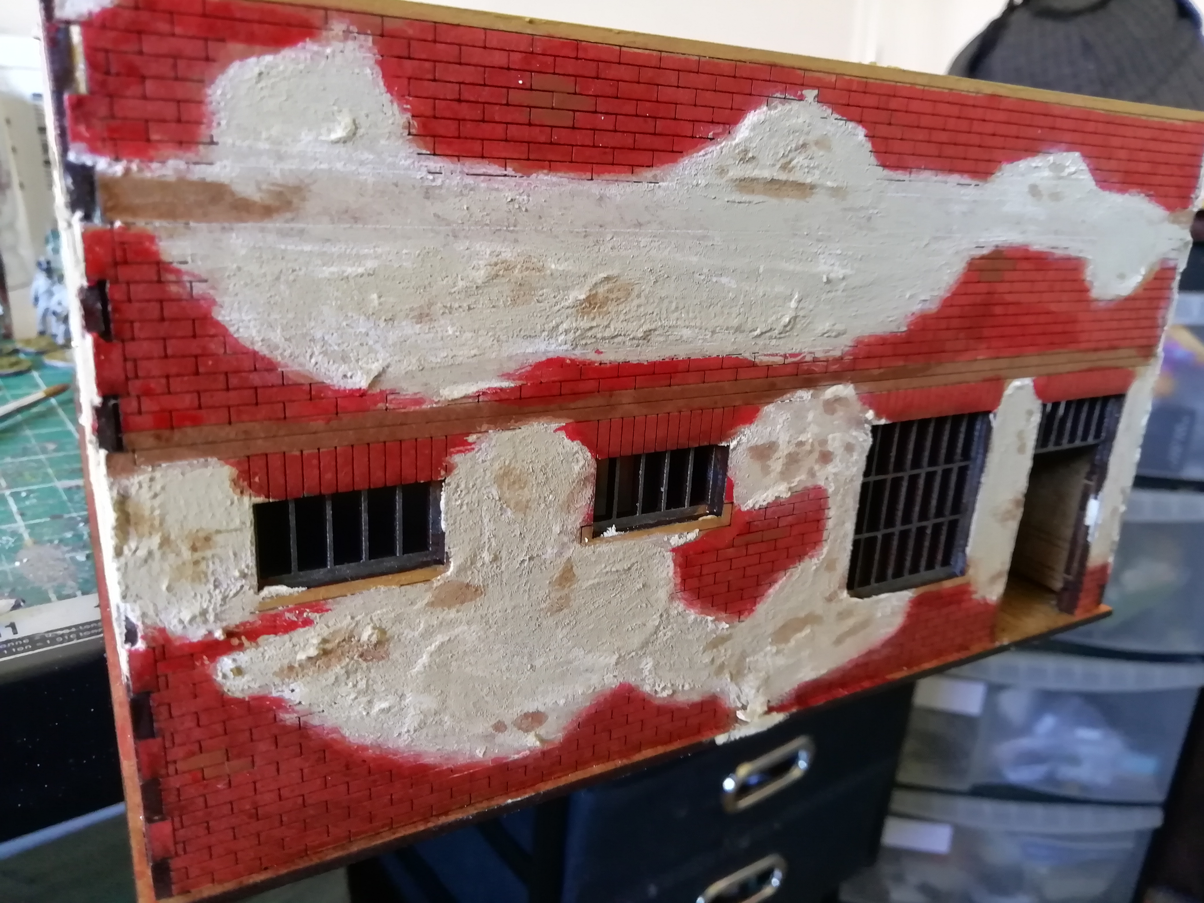 This kit has patches of brick work so I decided to use filler on the open areas to give it some texture.