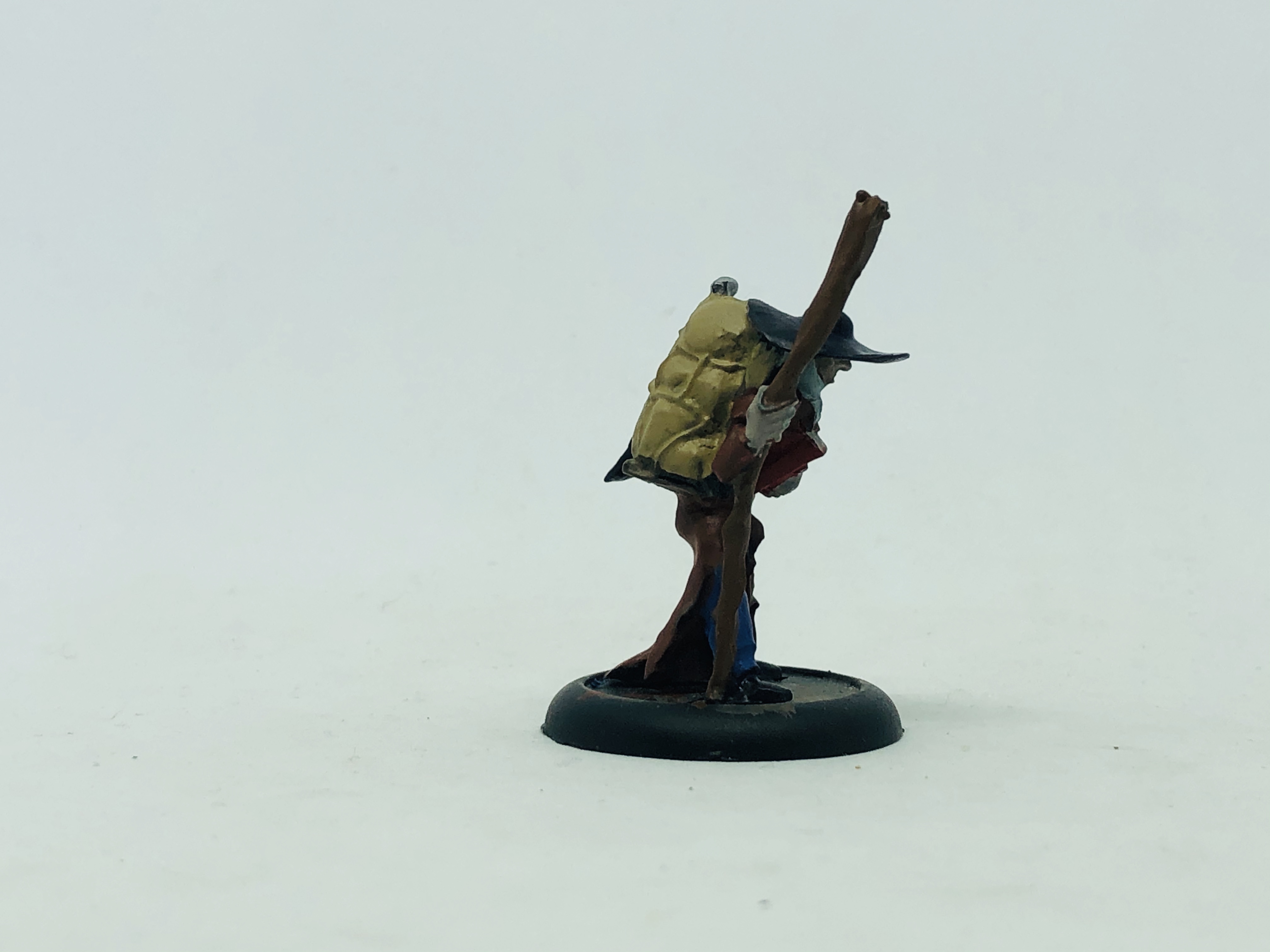 A mercenary ‘Swords for Hire’ faction model for ArcWorlde, this metal miniature is very characterful but subtle. I accidentally mistook the blade on the scythe for flash and ripped it off. Now he, unintentionally, looks like a more sinister vagabond traveler who won’t be seen with his pale skin, gaunt features or magical paraphernalia until you are too close to escape…