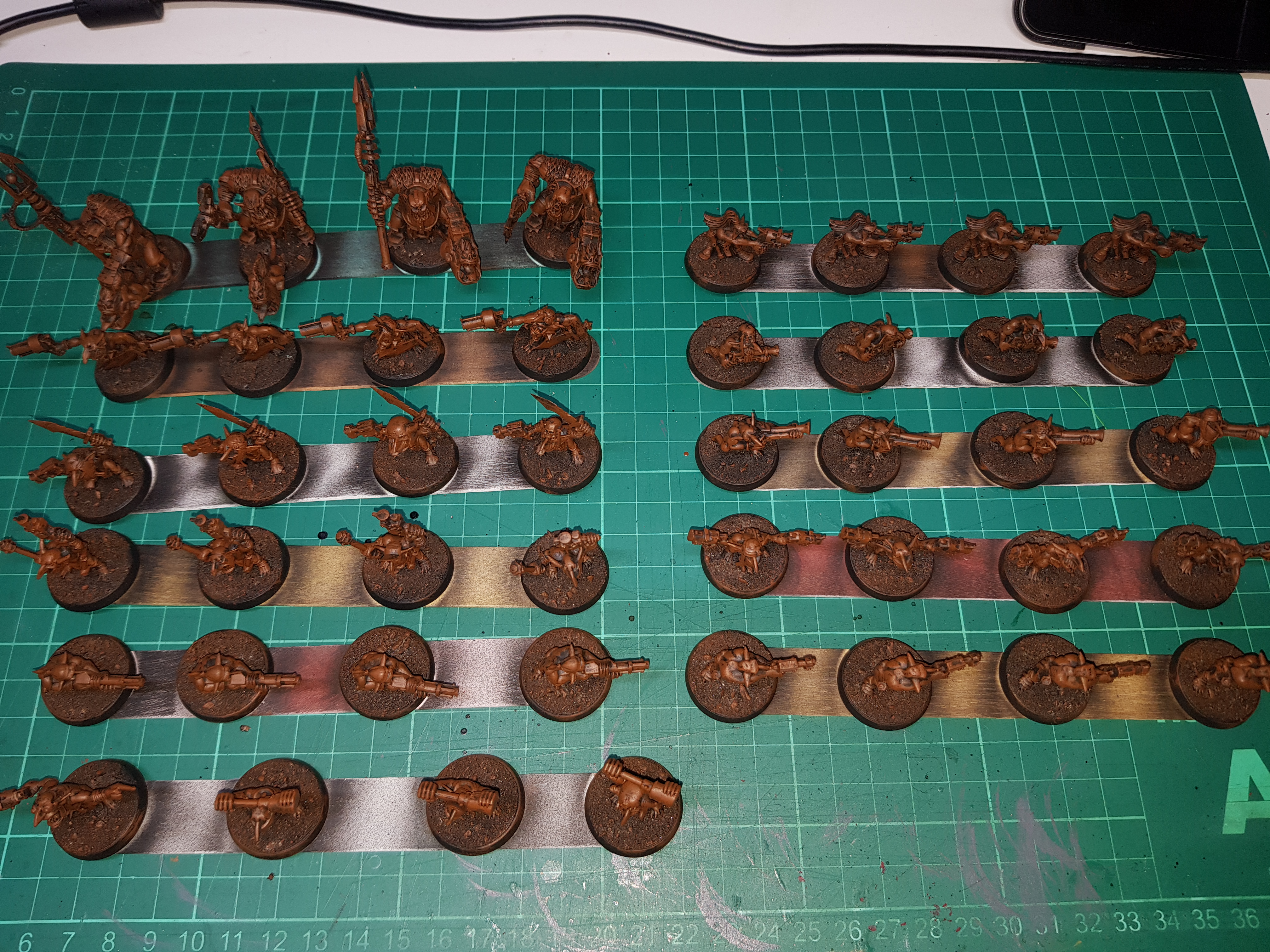 Obviously everything is going to need priming but first I want to base the Grots so that everything can be sprayed in one big batch.