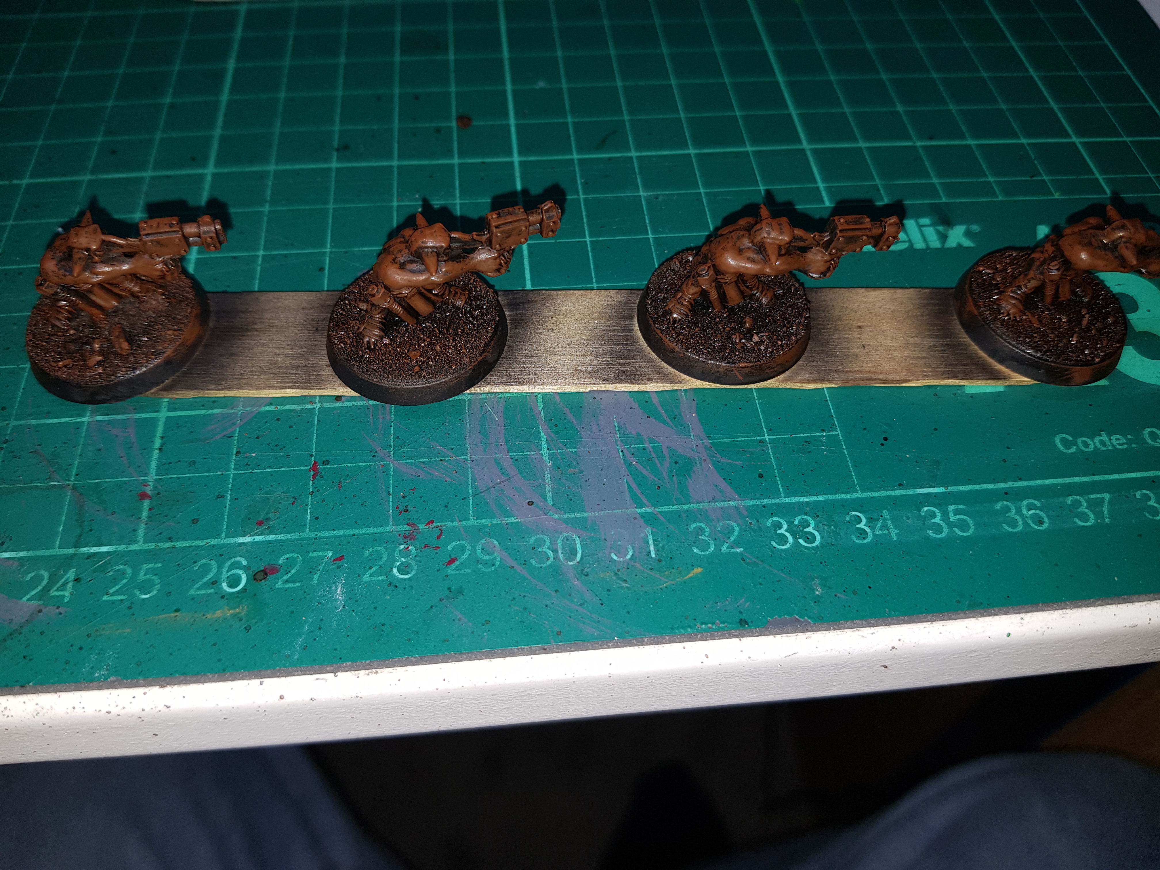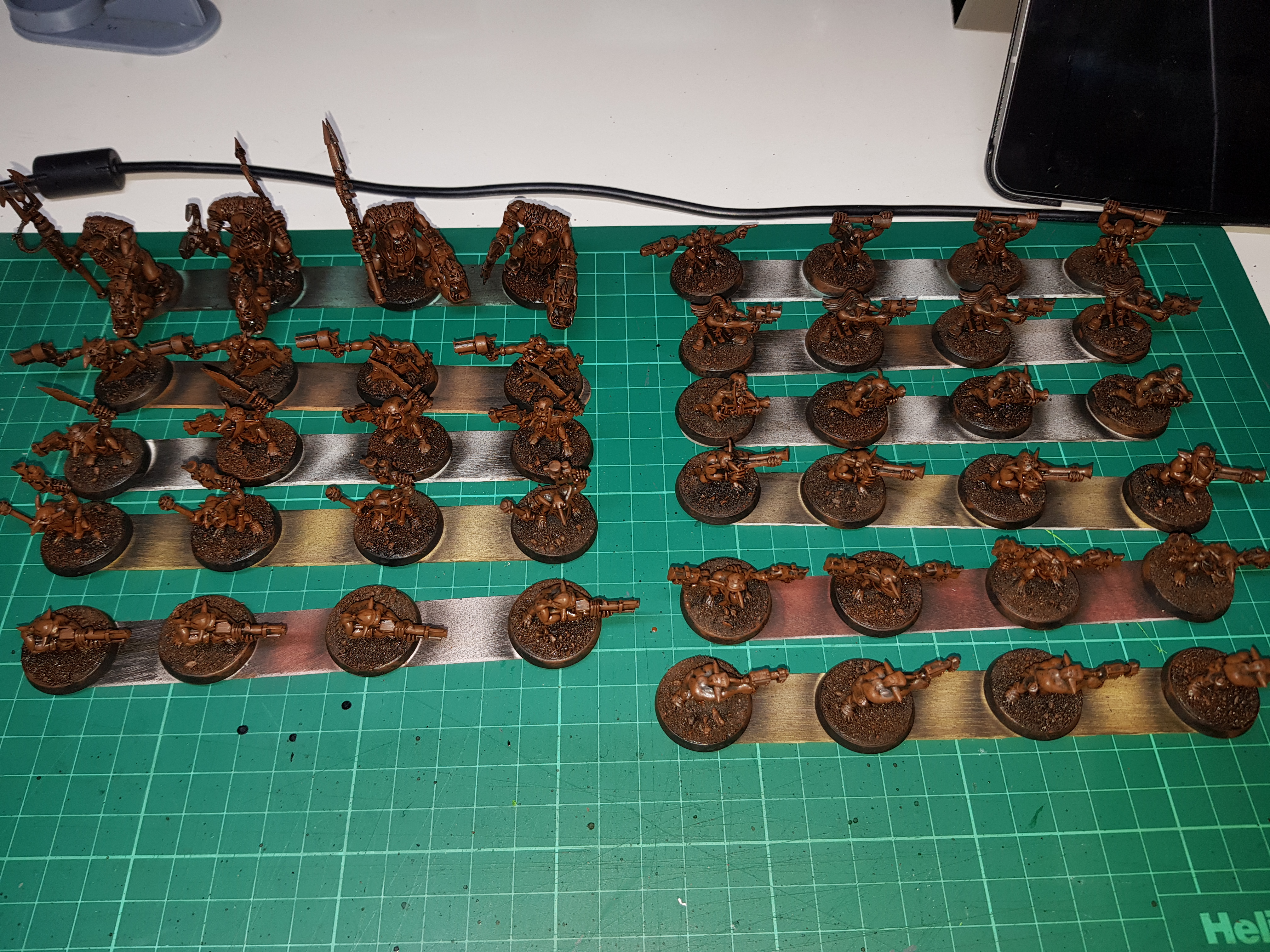 This shows that the Runtherds had their arms reattached before being given the same treatment, the fully based Grots and a close up to give a better idea of the effect.