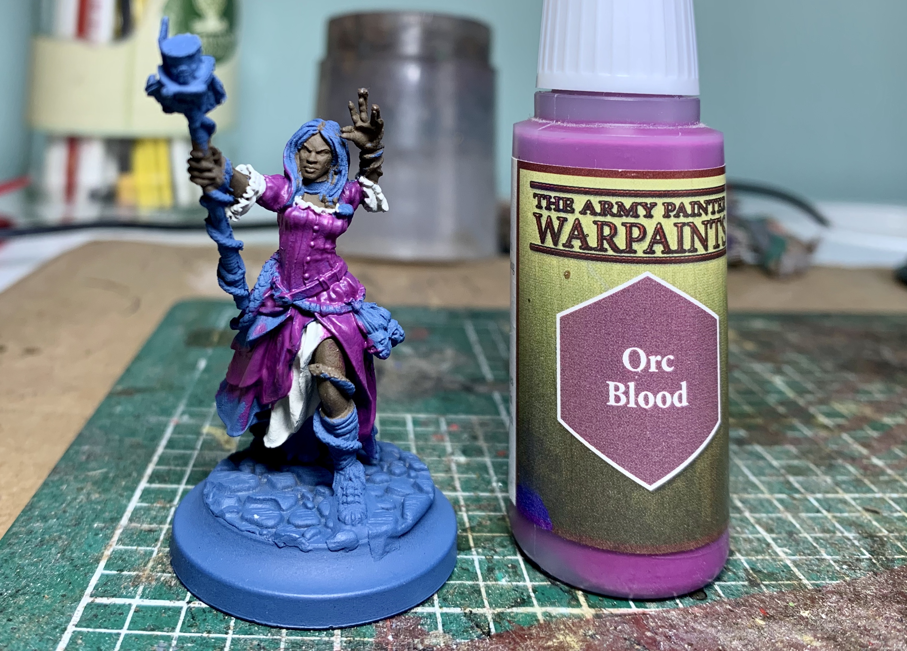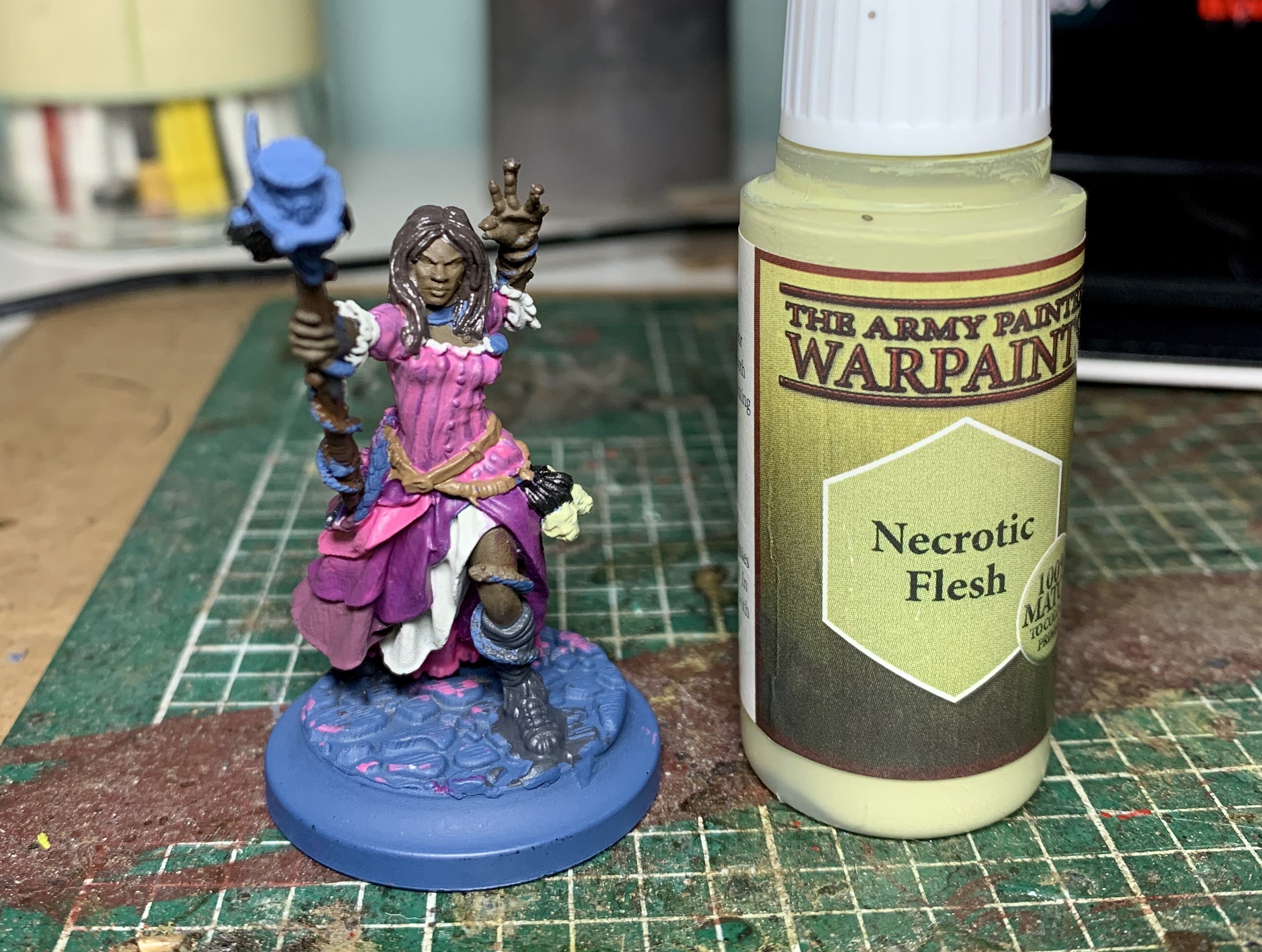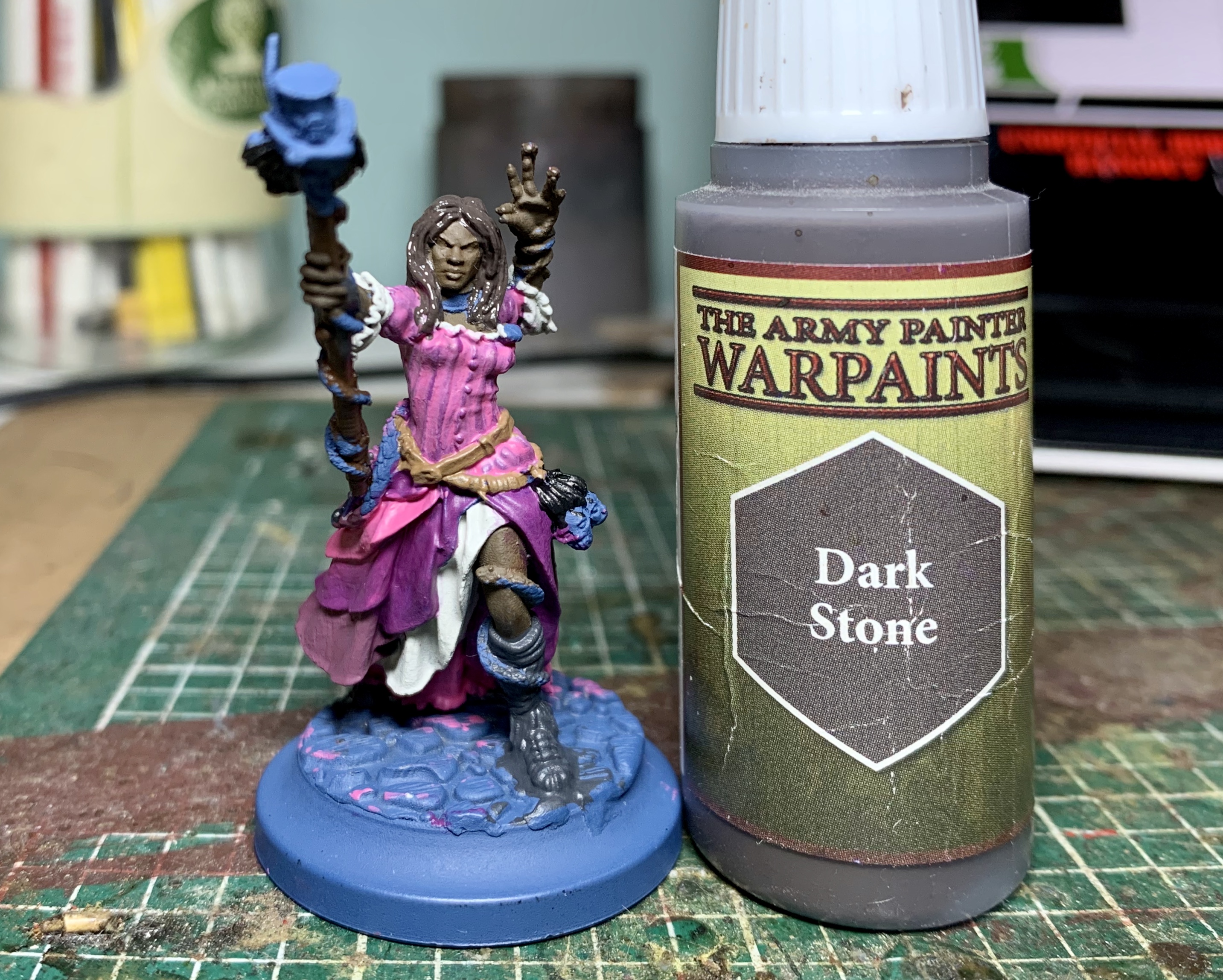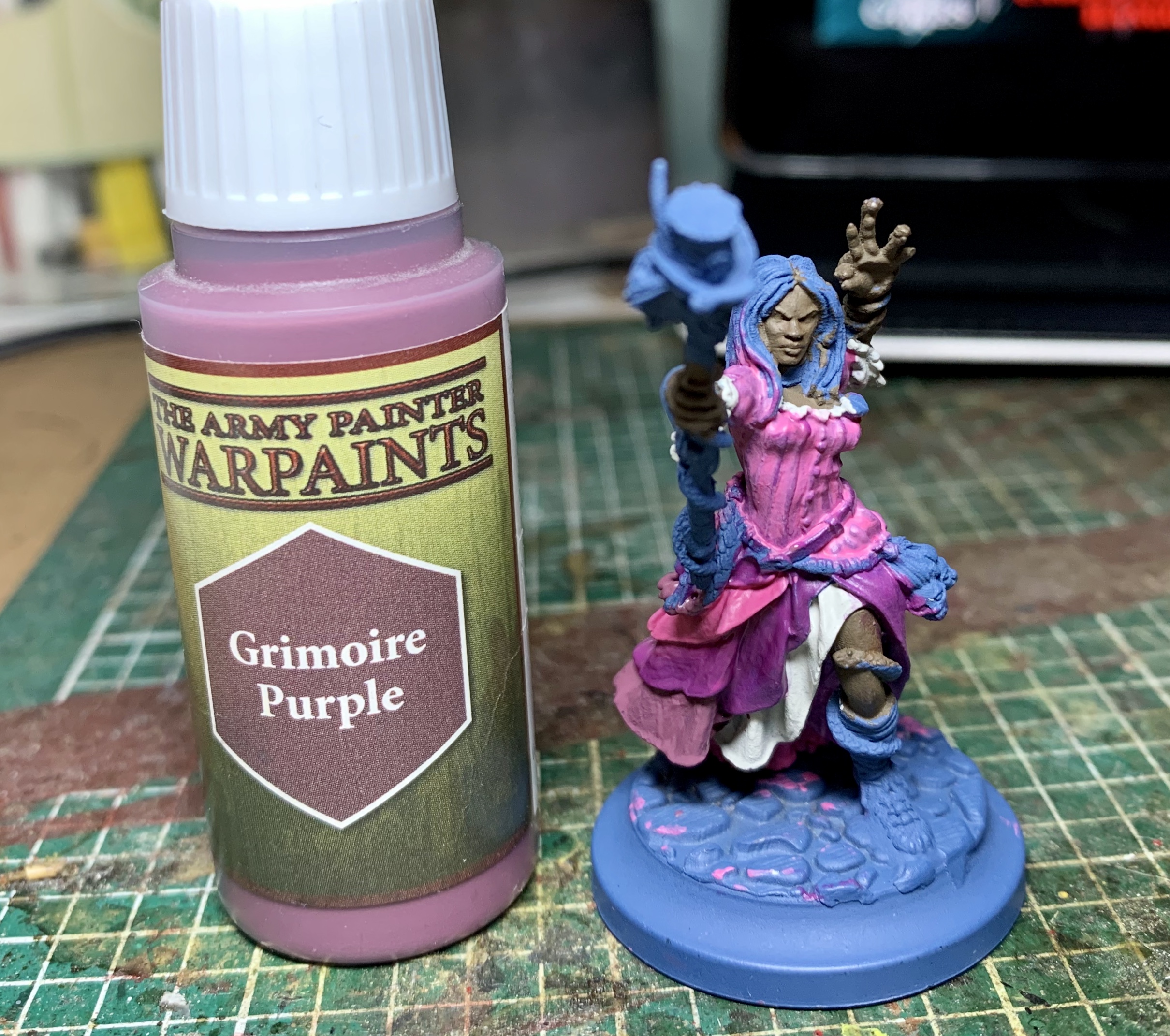 Hot on the heels of Cleo, its the lithe witch with the crazy staff, Zora. FYI the skin colour is Vallejo Chocolate brownI forgot to take a picture of the brain matter beige drybrush step but there was one! Then it’s washed. 50/50 dark tone and medium on everything bar The purple and then purple tone on the purple and then a soft tone on everything bar the Warlock purple
