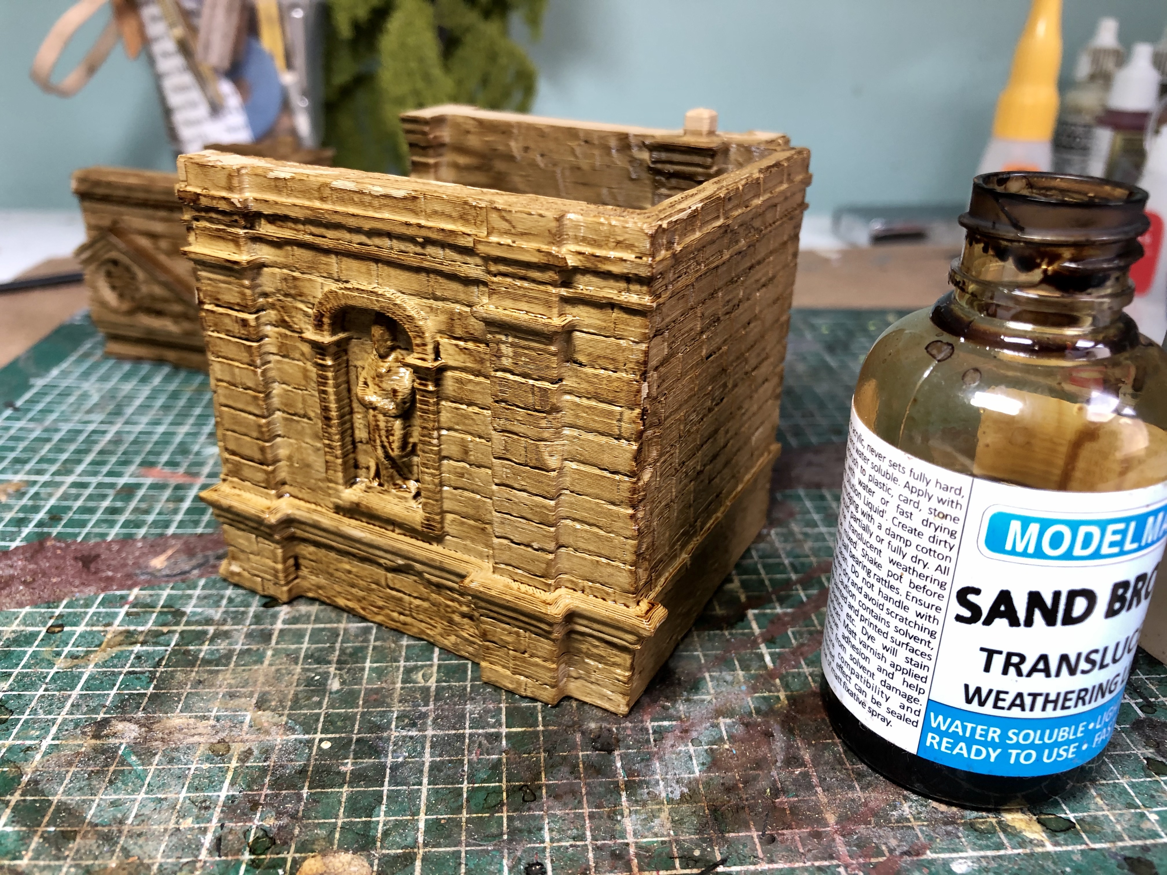 Now I was unsure how to paint t but then I remembered I had two bottles of Model Mates sitting in a draw from a Salute trip from about three years ago. After seeing how @warzan has been using model mates and water to quickly get scenery finished I thought I’d have a crack!