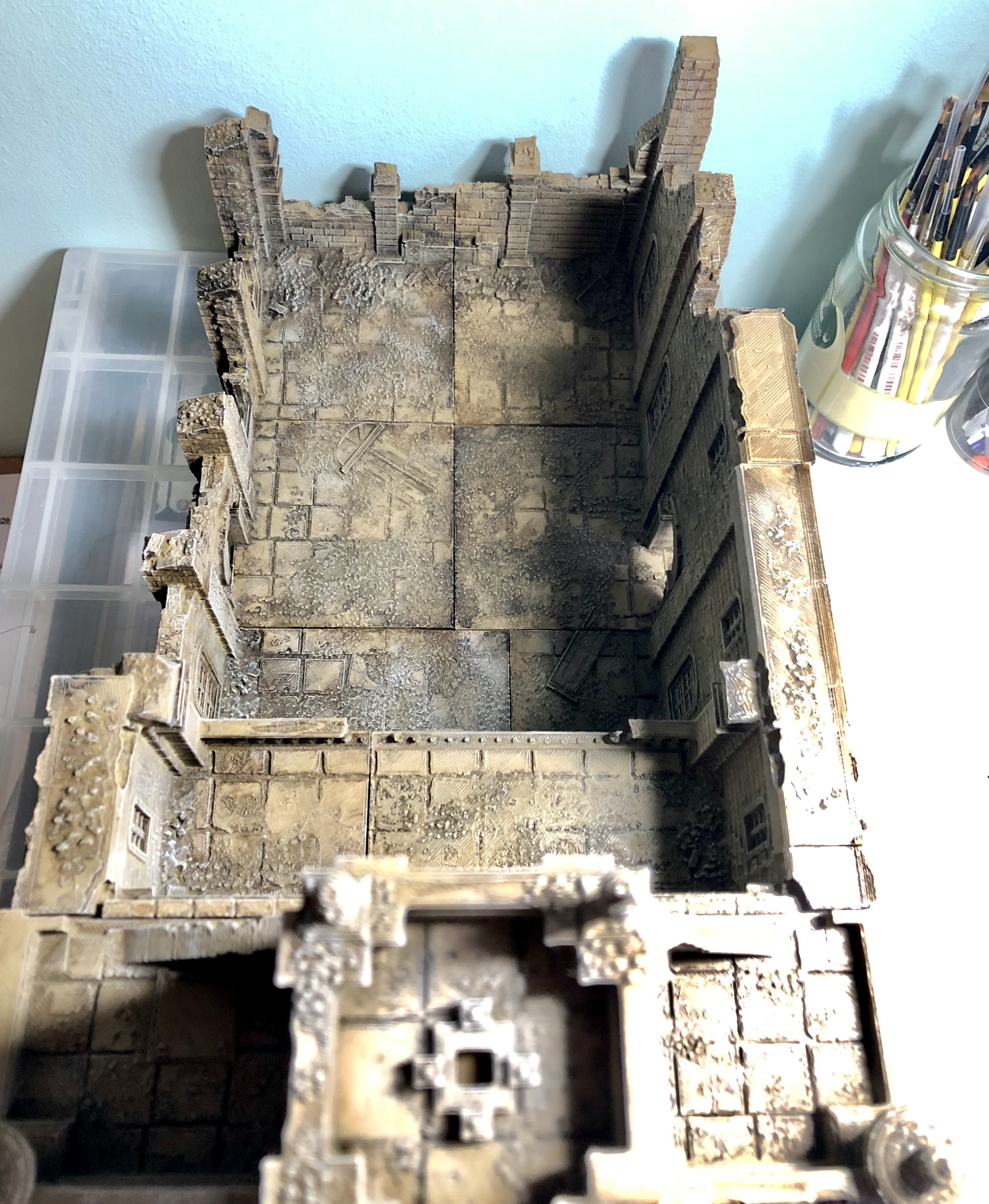 Firstly I went over everything with a sand brown and then added patches of mud brown.