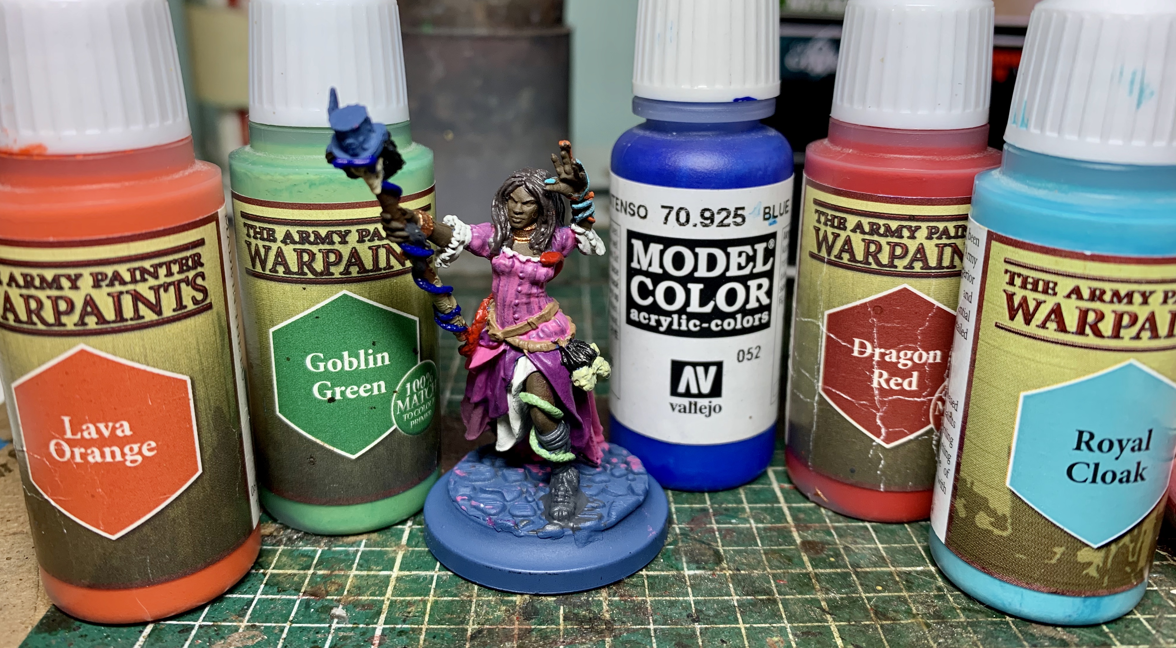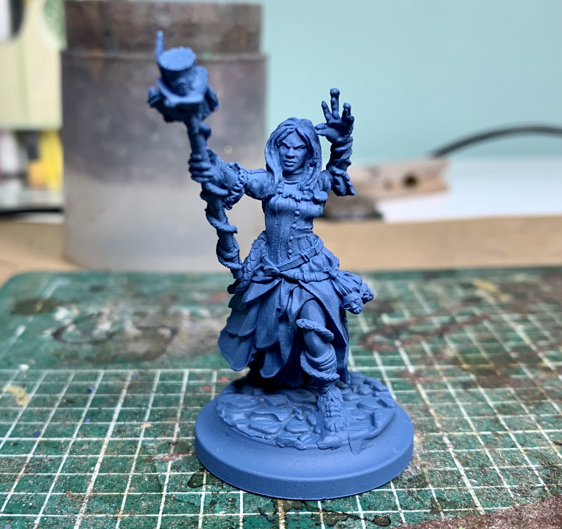 Now originally I had hoped to rebase my original version of Marie but a quick side by side showed that the new sculpt is much larger and admittedly much more dynamic. So it time to paint her, a second time!And she’s done, not 100% happy as I think I made a mistake with the primer colour. Its too dark for the colours I was using so it took way to many coats. Still when in lockdown supplies are scarce!!