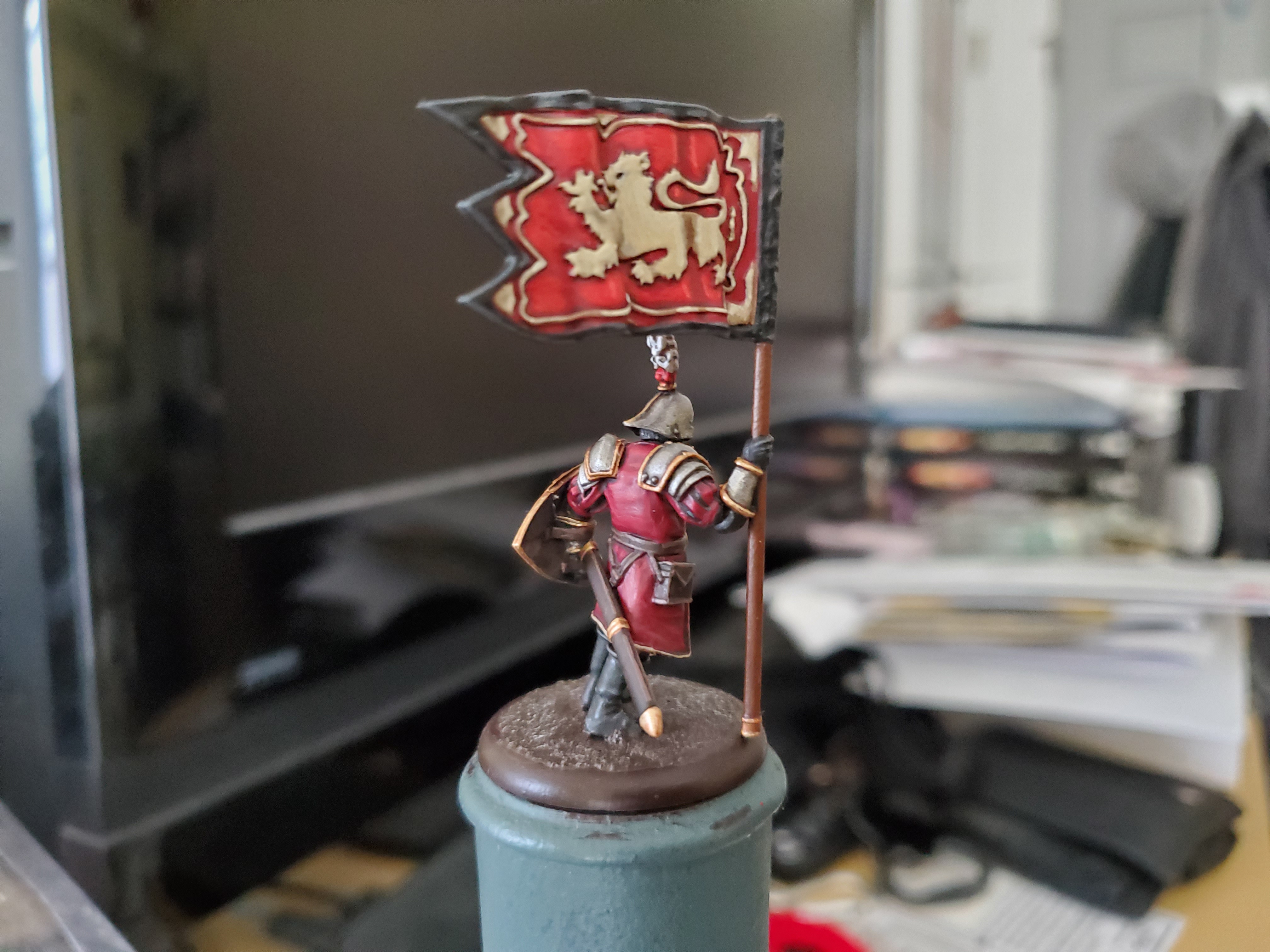 Another mini done (sort of)! This time round we’re back to Westeros with a Lannister Guardsmen. Long story short, my time for painting minis is a little les right now, so painting individual minis works best for me. Also means I can get through some of the massive backlog of characters and one-offs that I’ve acquired over the years. Now this chap isn’t complete, but the banner is something I plan to do as a separate step-by-stpe video, whereas the main chap was painted using Duncan Rhodes’ guide for Lannisters that I’ll link at the end. There’s only a few differences I used from his method but it was mostly the same (though I used only Citadel paints).