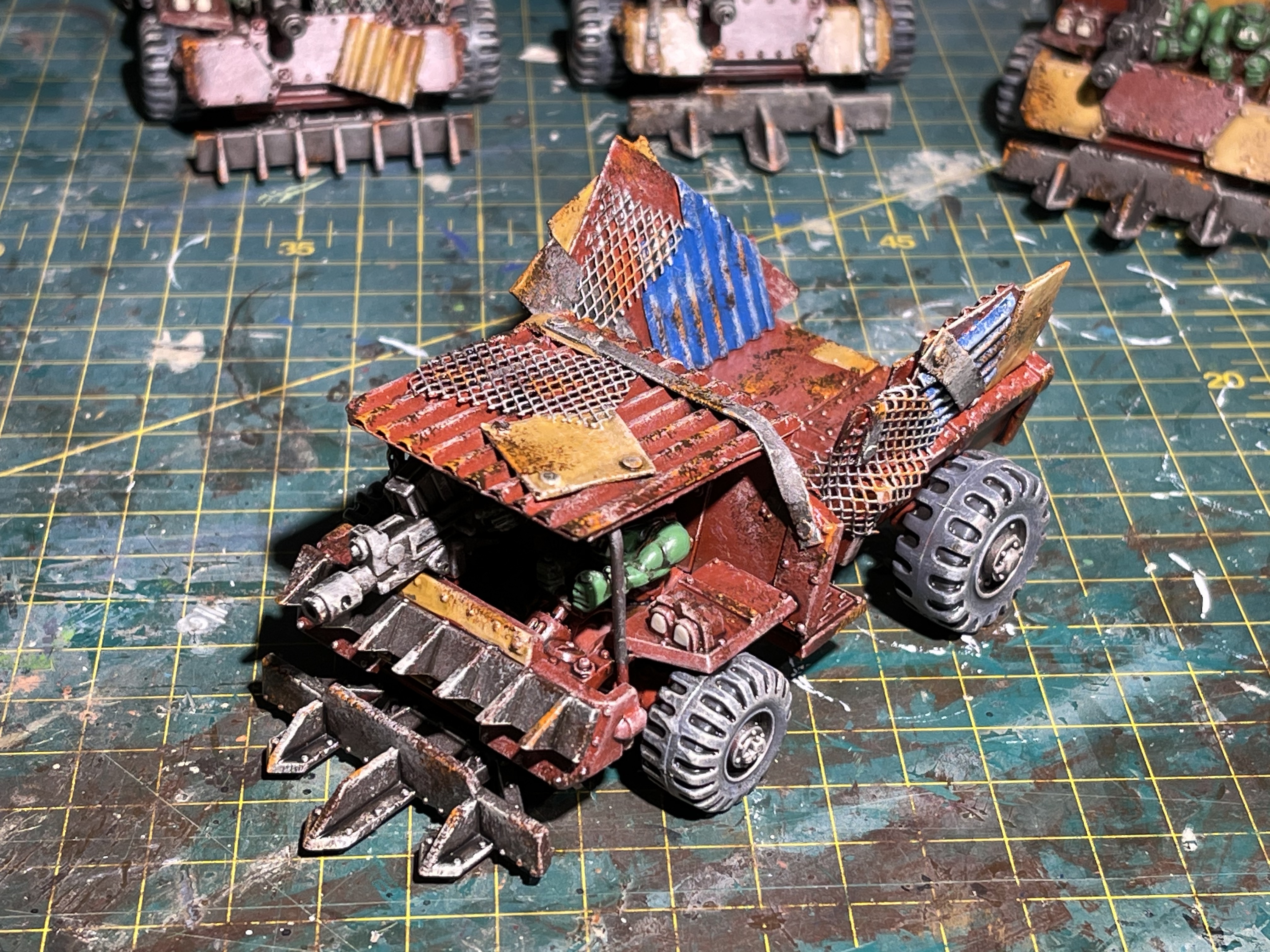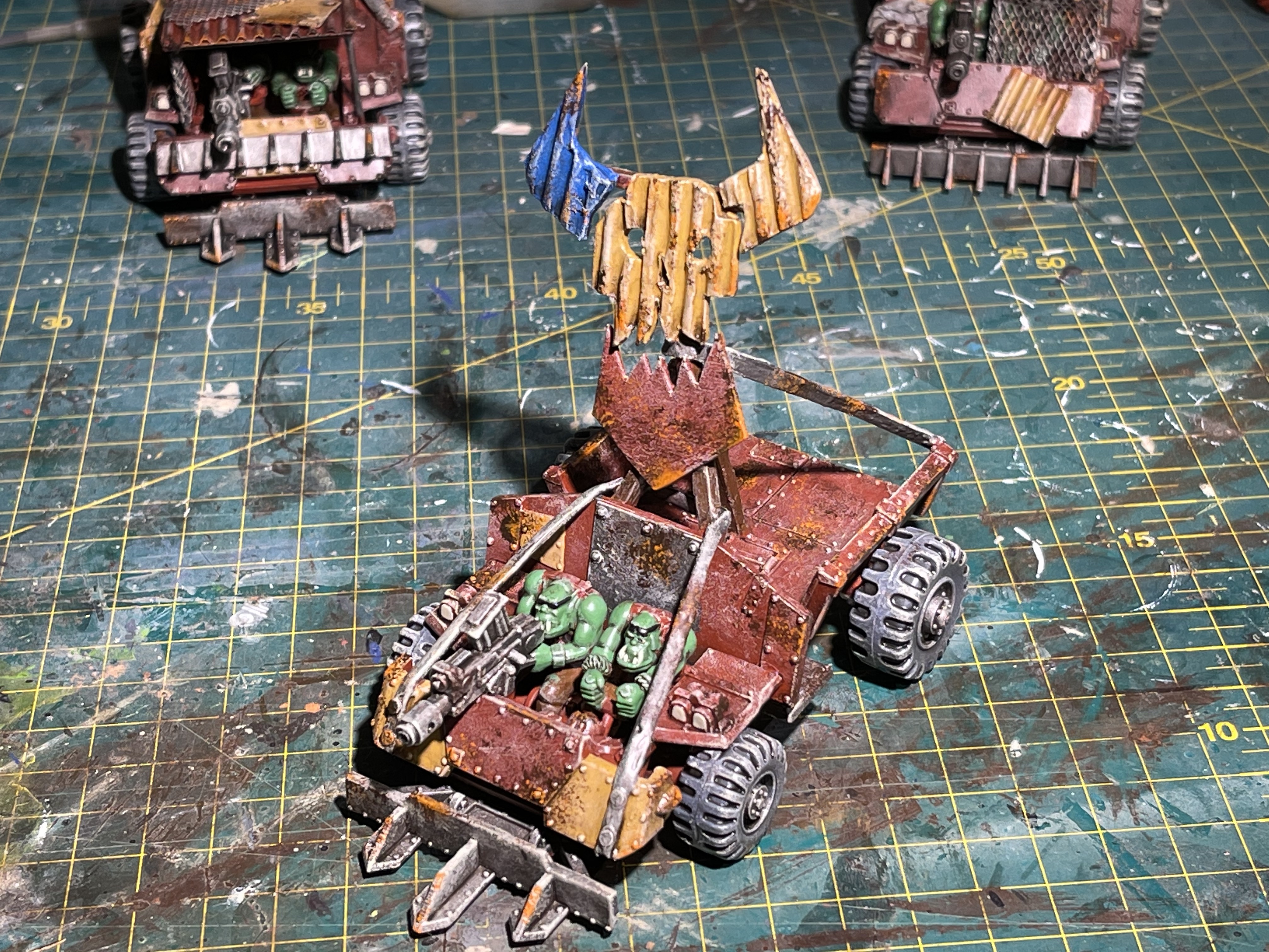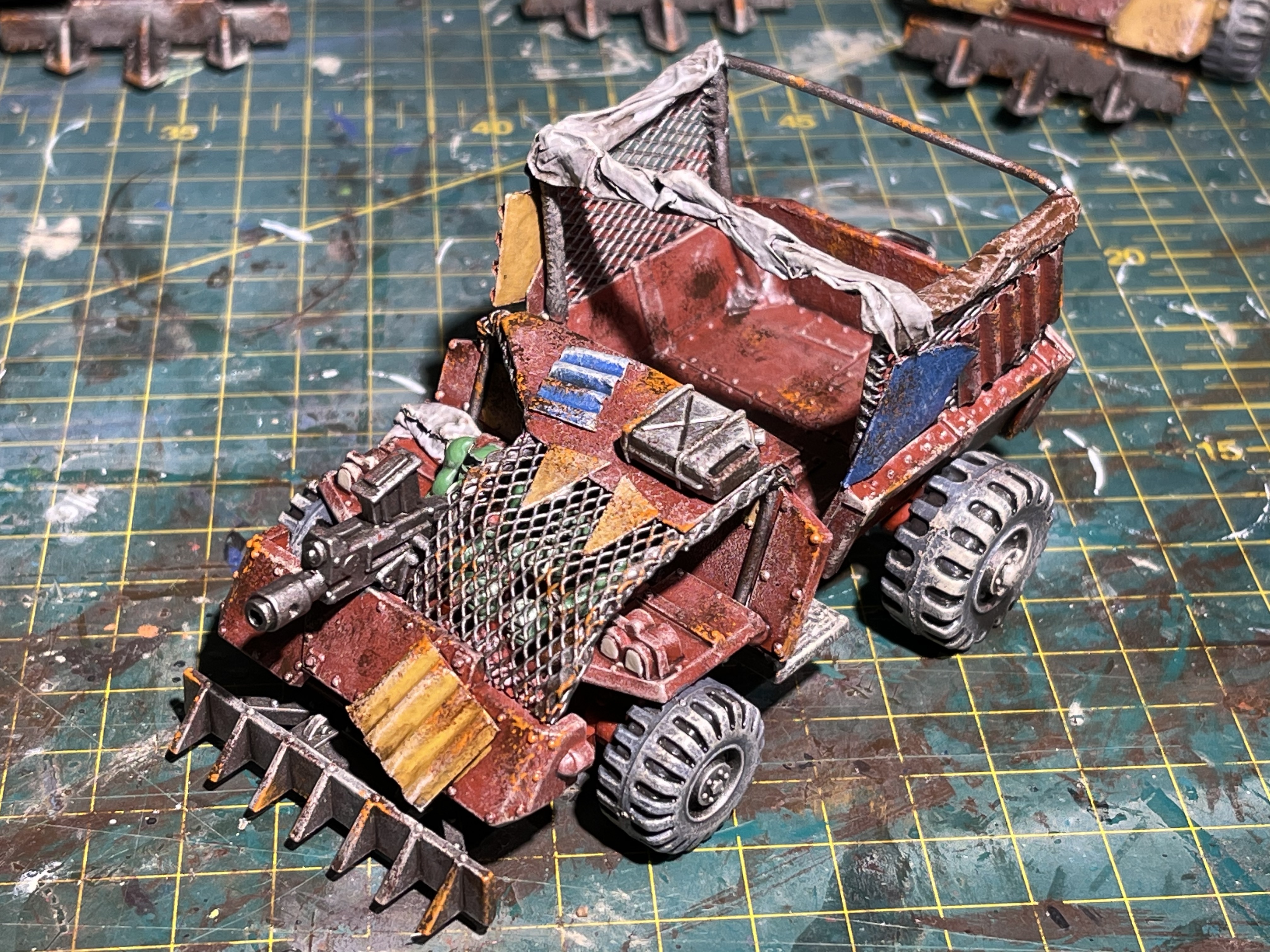 I am really happy the the centre wartrakk left hand side yellow armour panelling. it looks suitably ramshackle and hurriedly bolted on and held with crude metal banding.