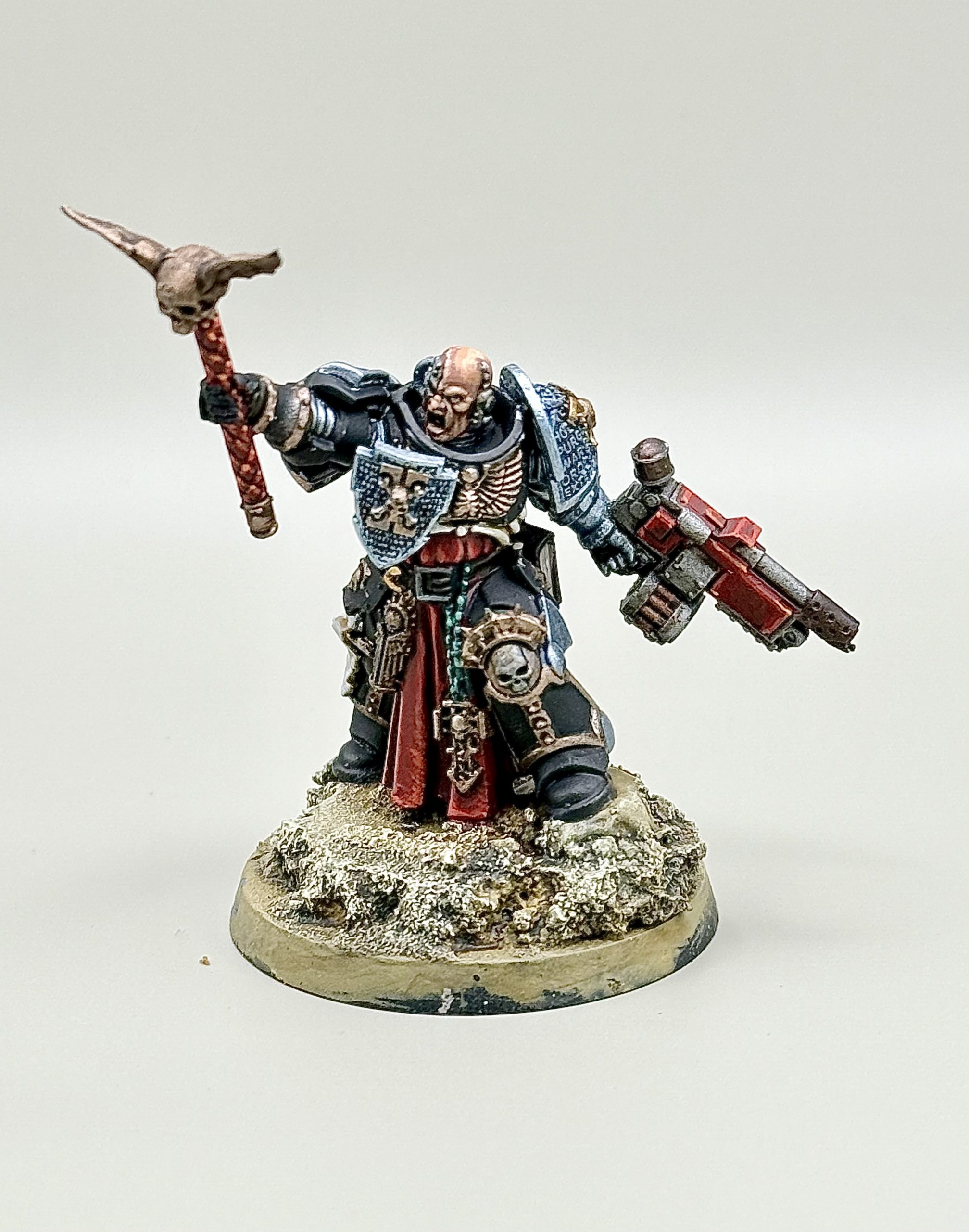 2) replacing Crozius topper with a winged skull more similar to old Cassius miniatures