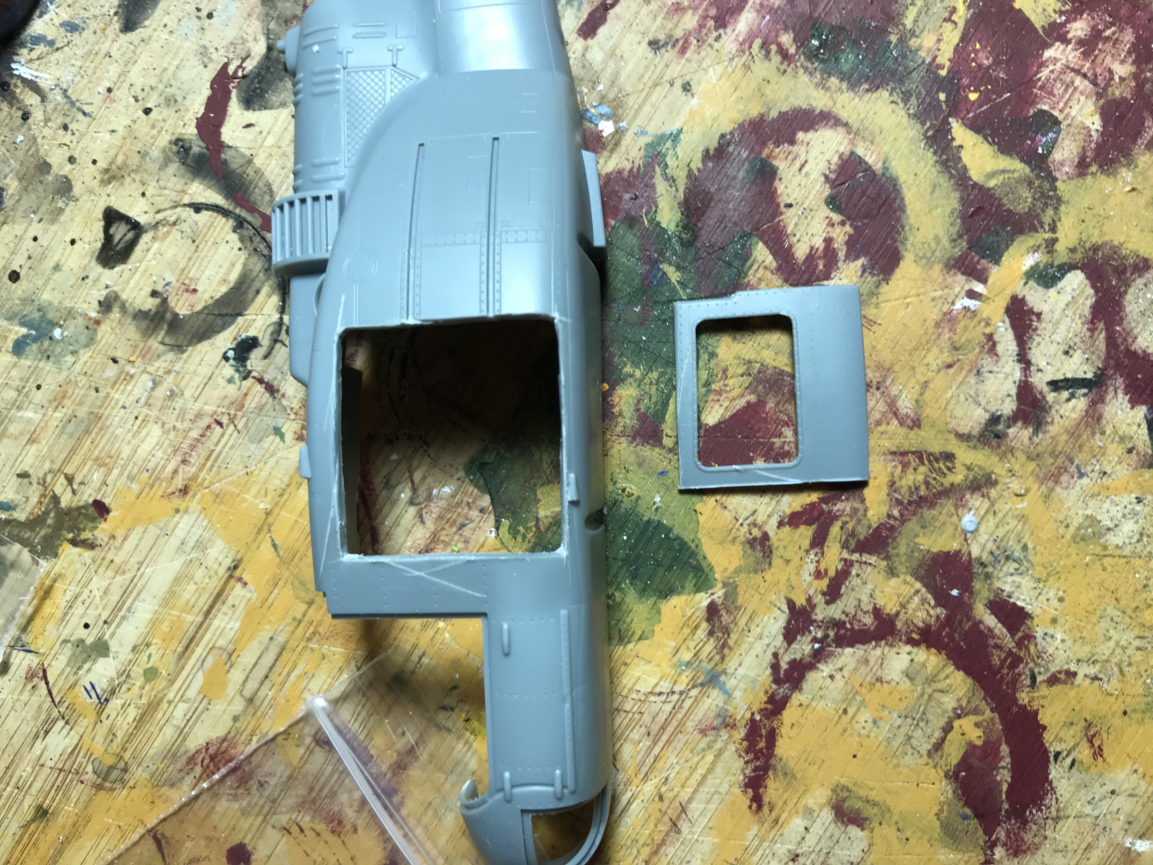 As its a later model than the one used during the war i had to do some modifications with plasticard and choped some bits off.