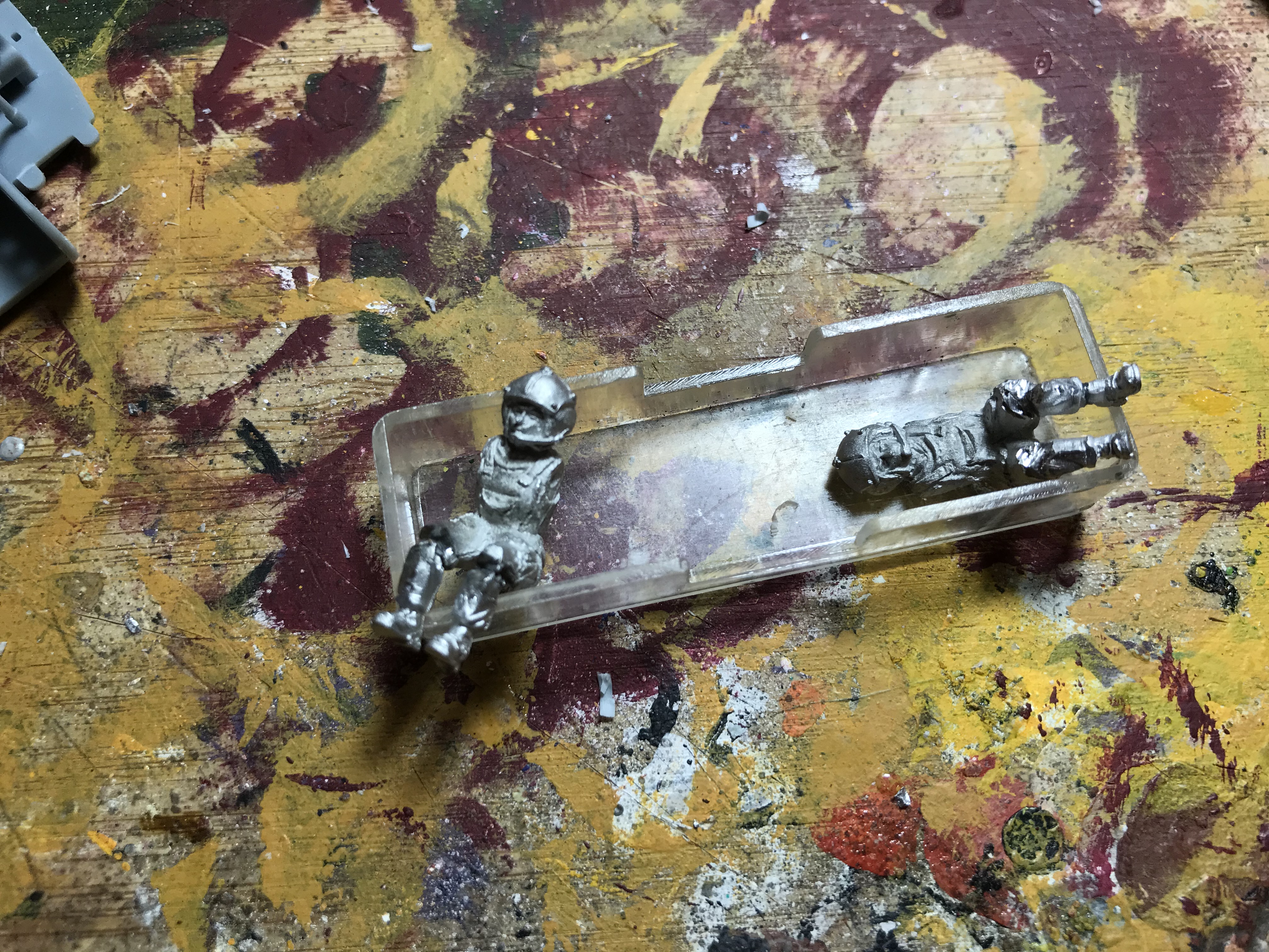 their legs were at an odd angle so i chopped them about at the knees and greenstuffed them back together so they now sit up properly, im pretty pleased with the result.