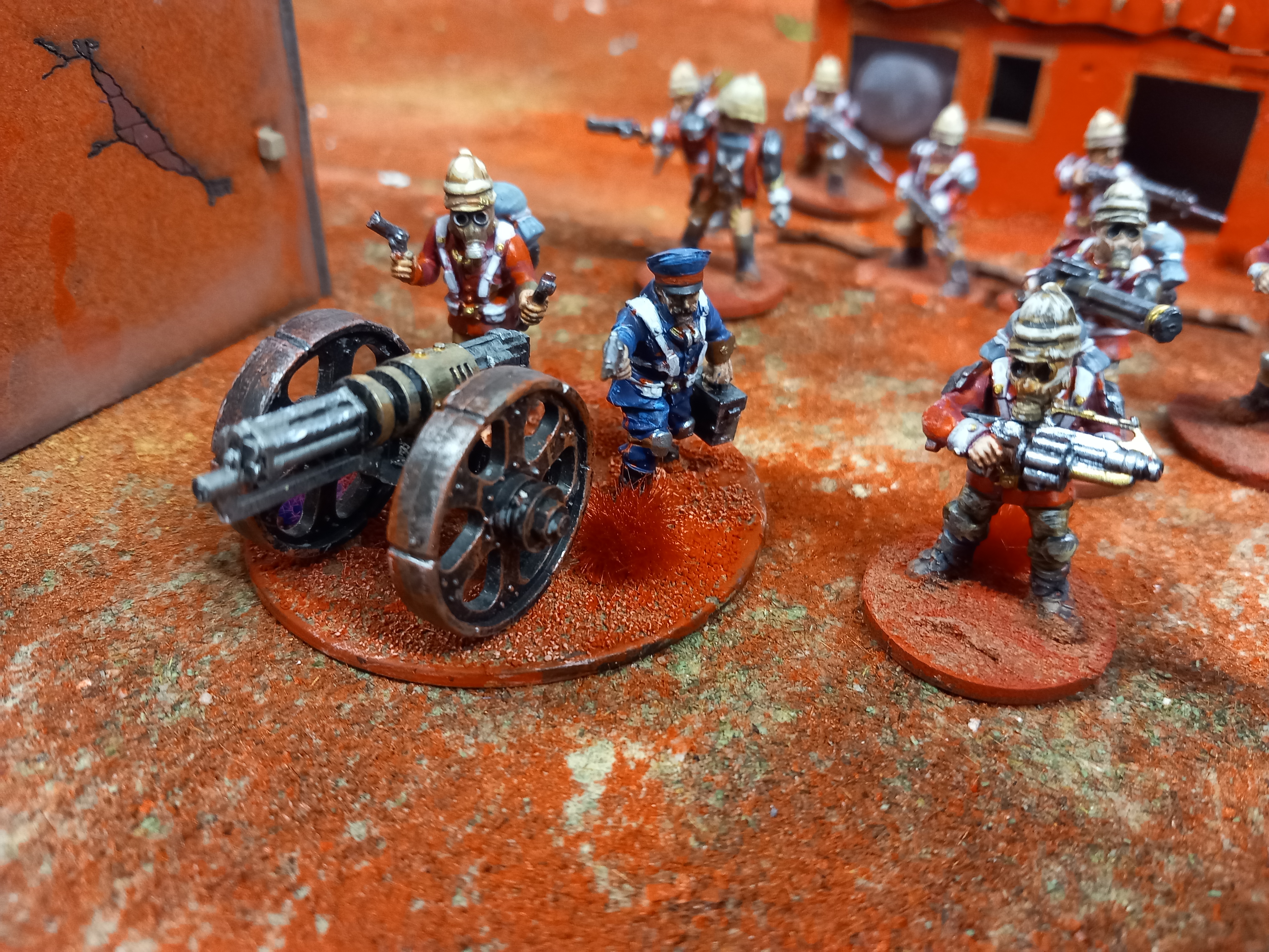 I've been working on two 24 point forces for xenos Rampant. One a British force with Martian allies and the second a prussian army with lizard men askari. Moston this is using wargames Atlantic minus and a bit of a kitbash like this artillery piece Bye bye Martian empires?