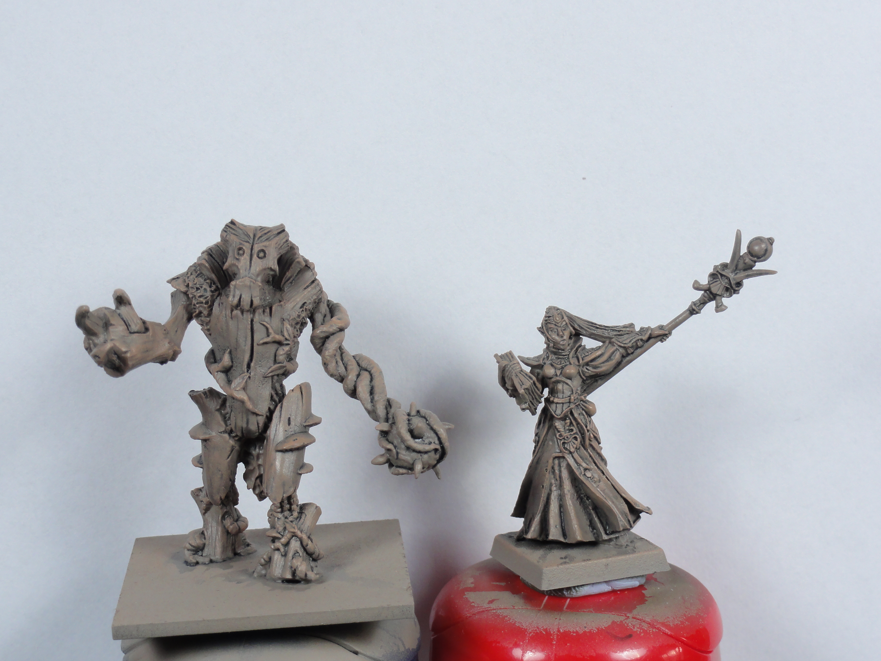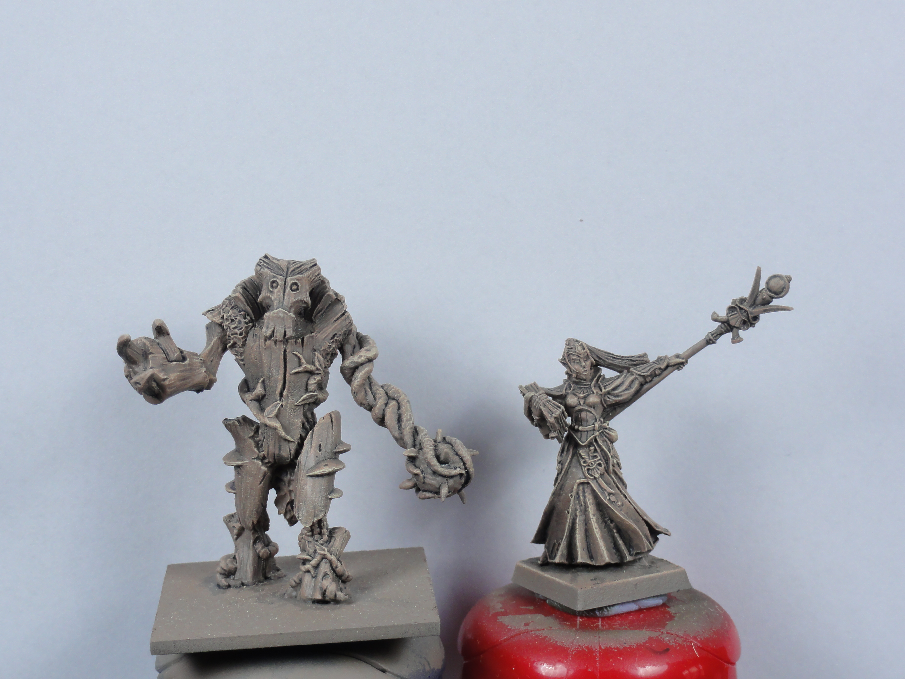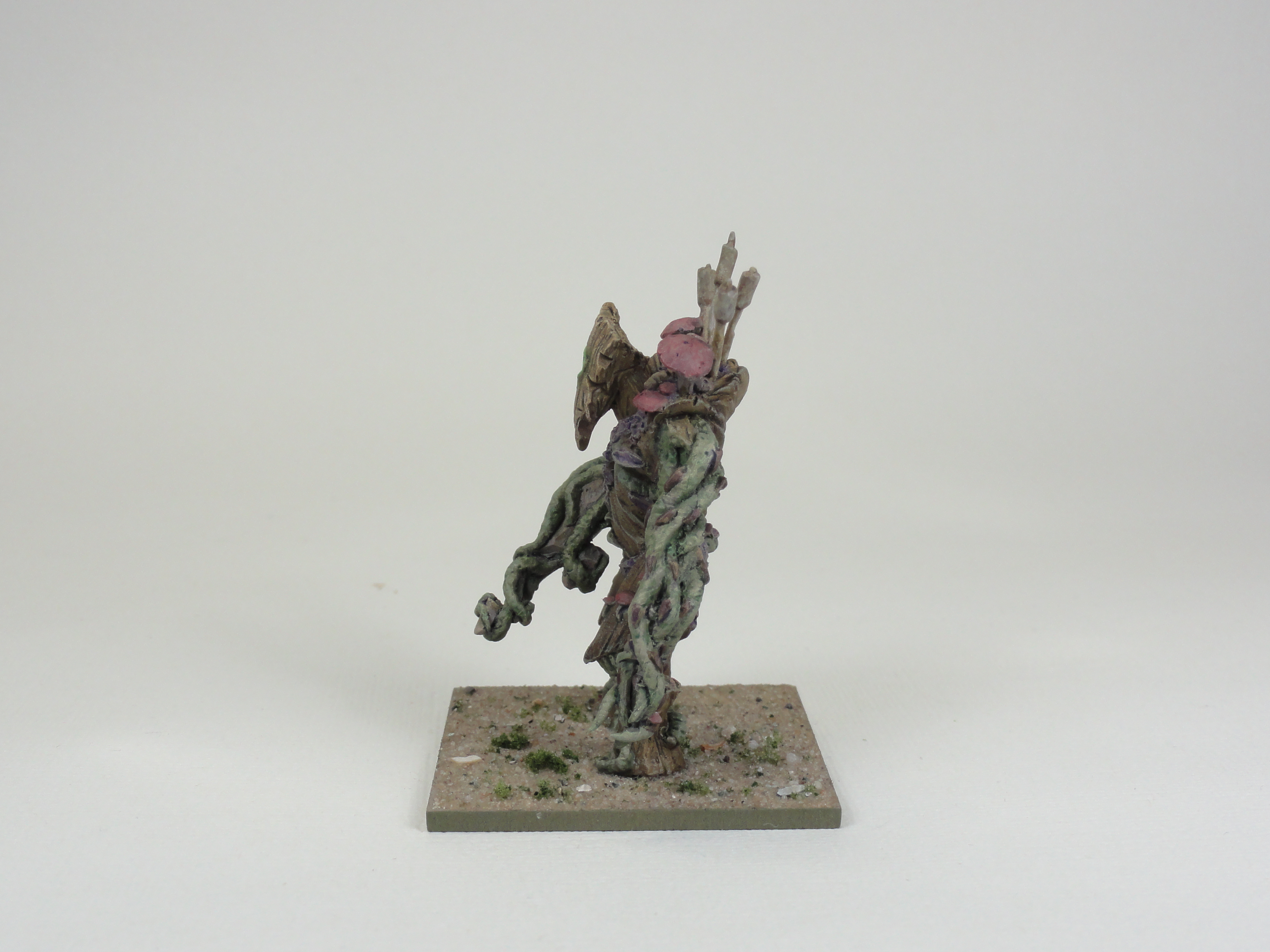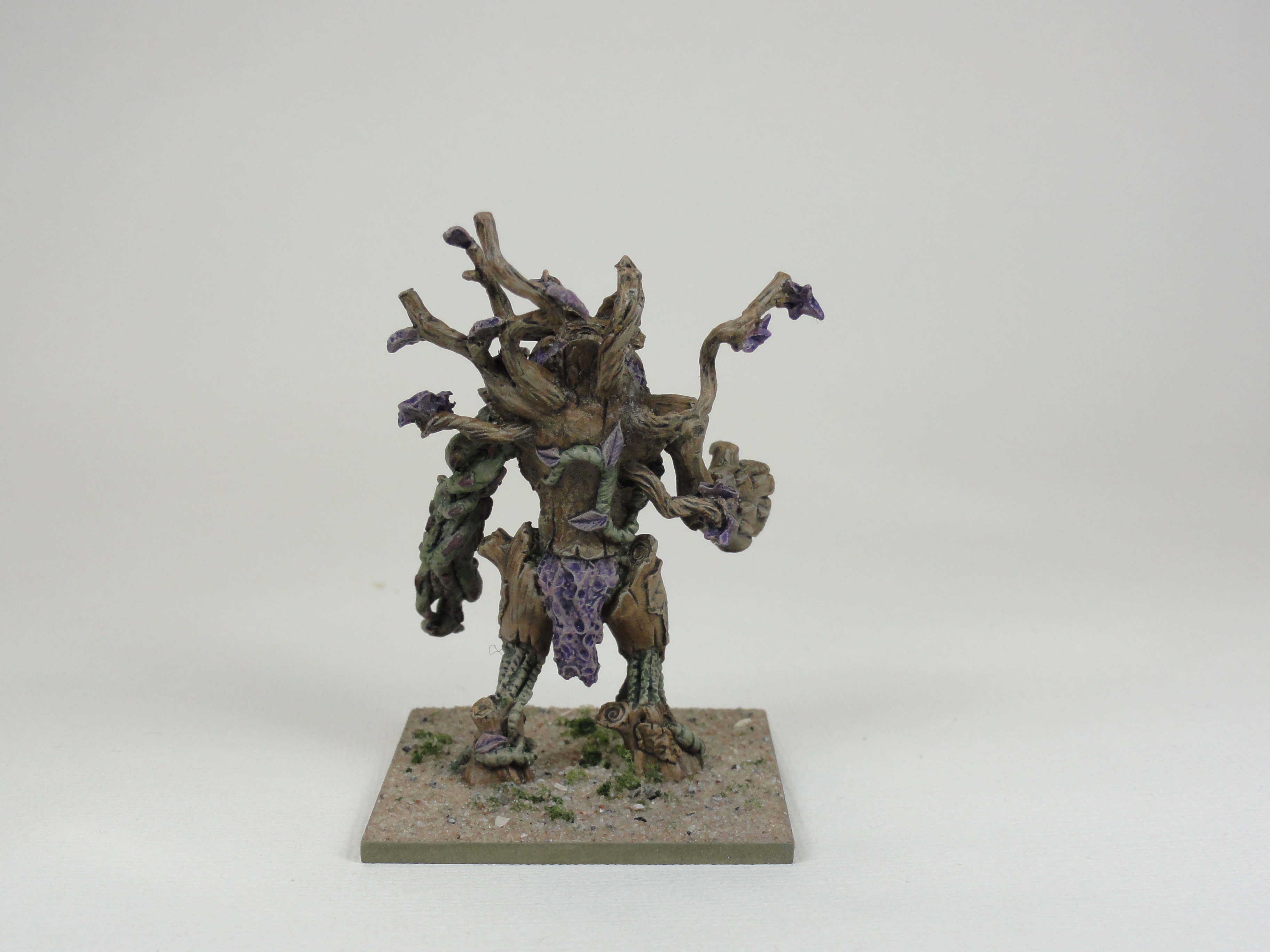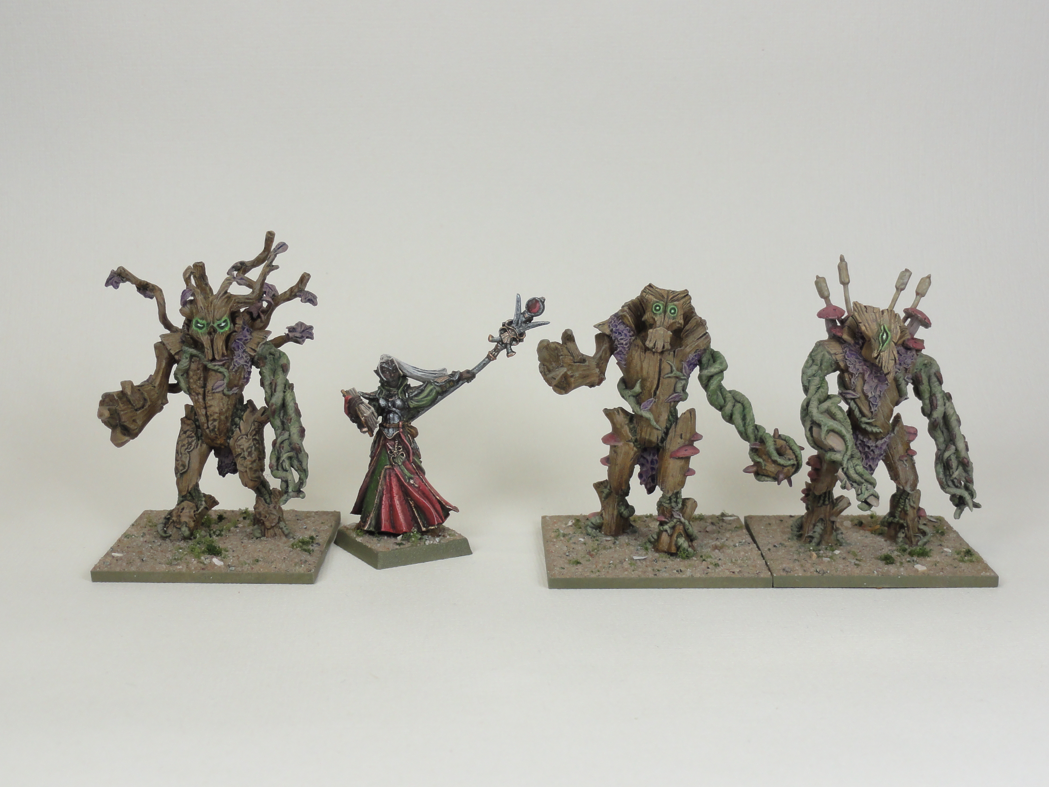 To make an Elf Vanguard list I wanted to add a Forest Shambler and an Elf Mage. I painted all 3 Forest Shamblers from a Kings of War regiment box so that the other 2 weren’t put away in a sensible place. I left off the cloak from the Elf Mage as I couldn’t get it to sit right. All the models could have been cleaned up better and the pitting on the Mage better repaired. The photos are a bit washed out.