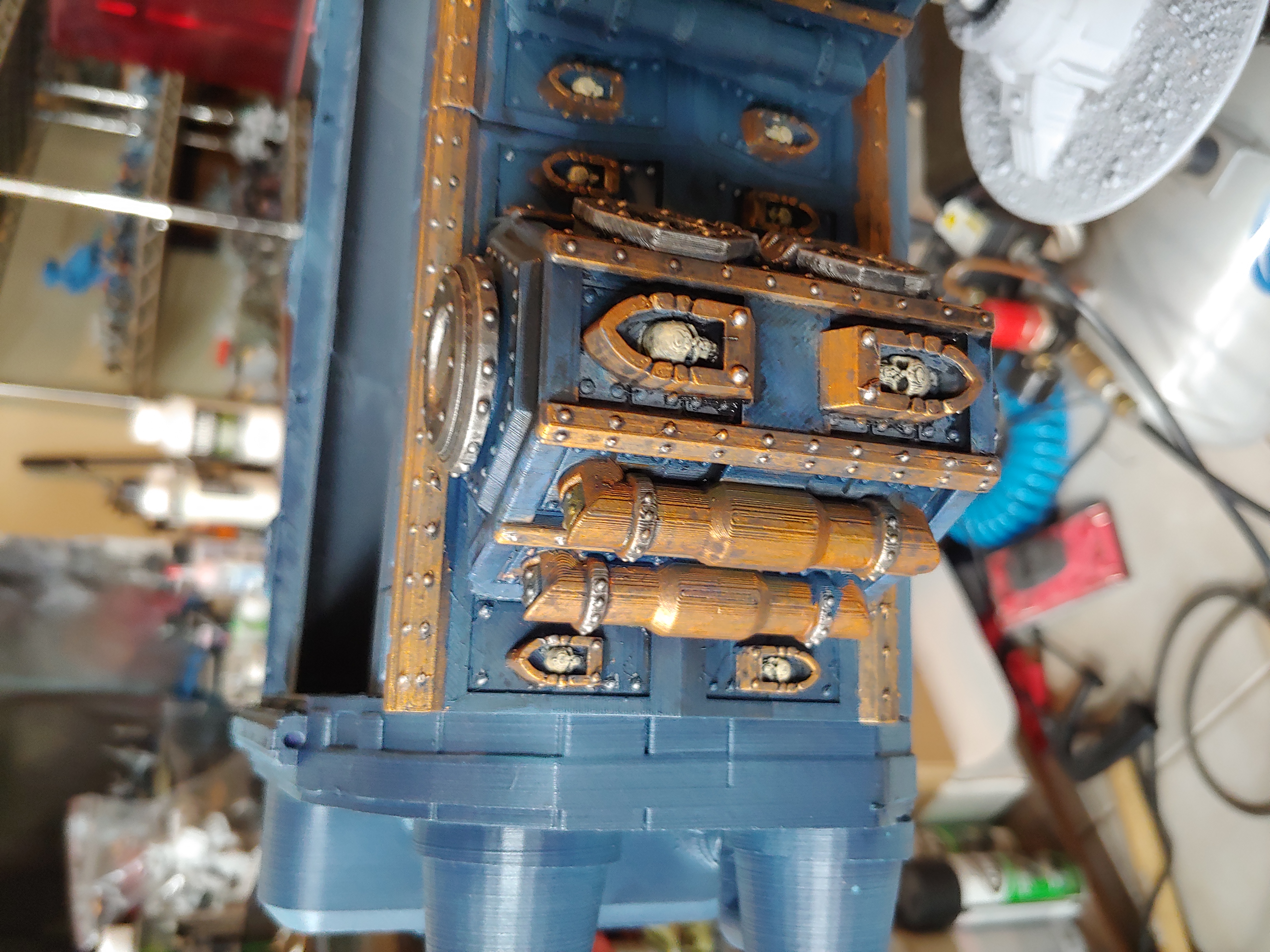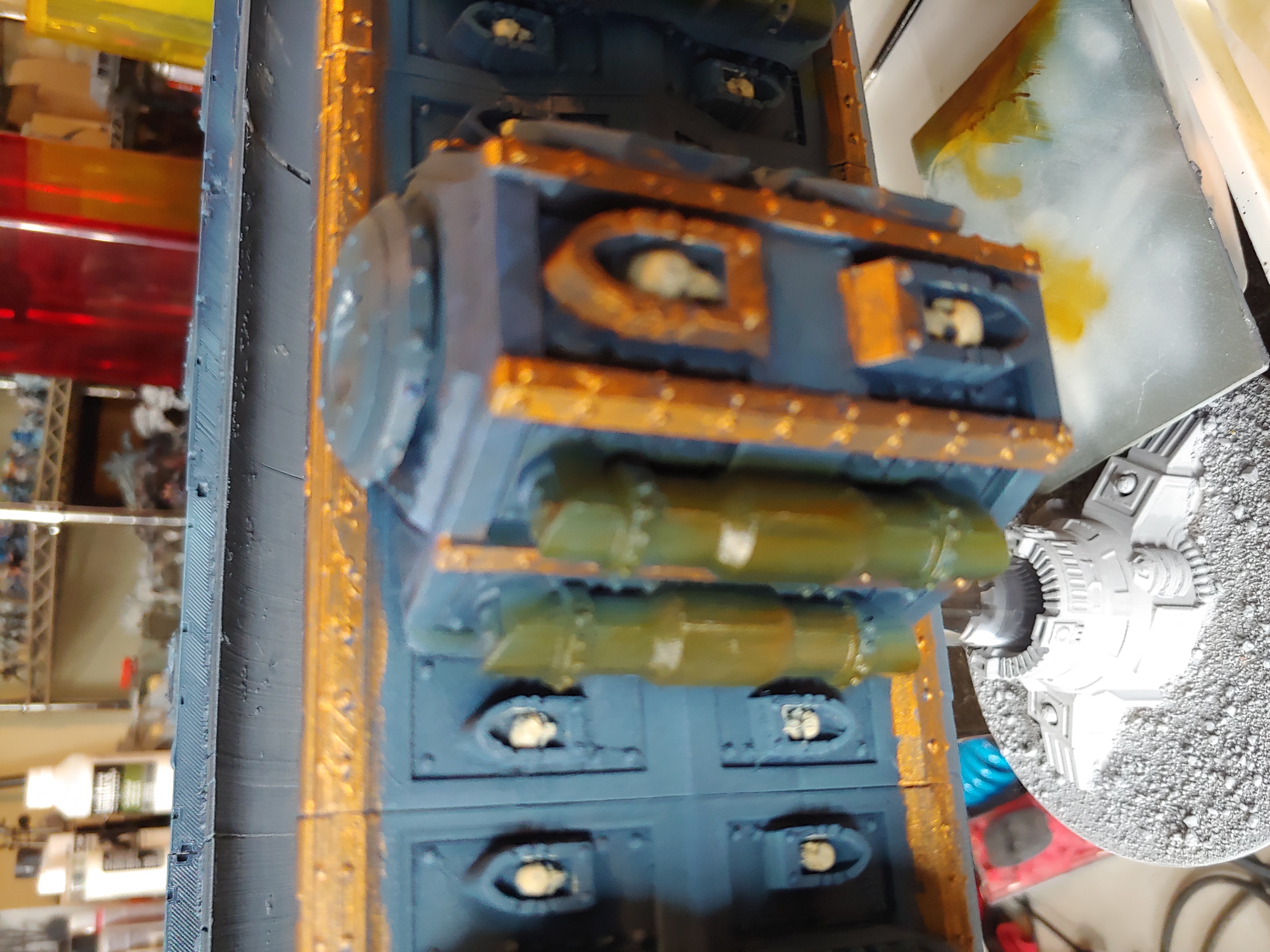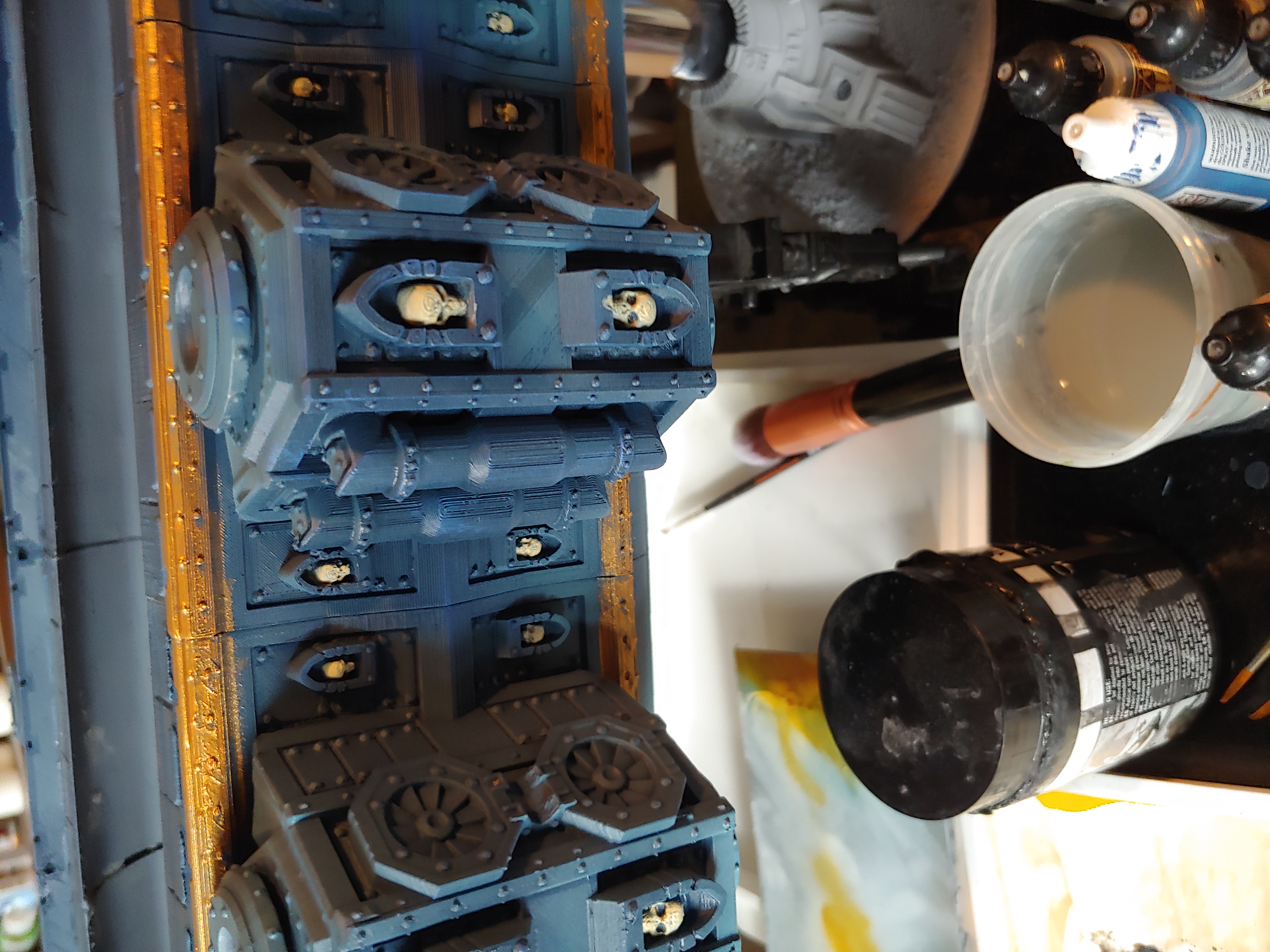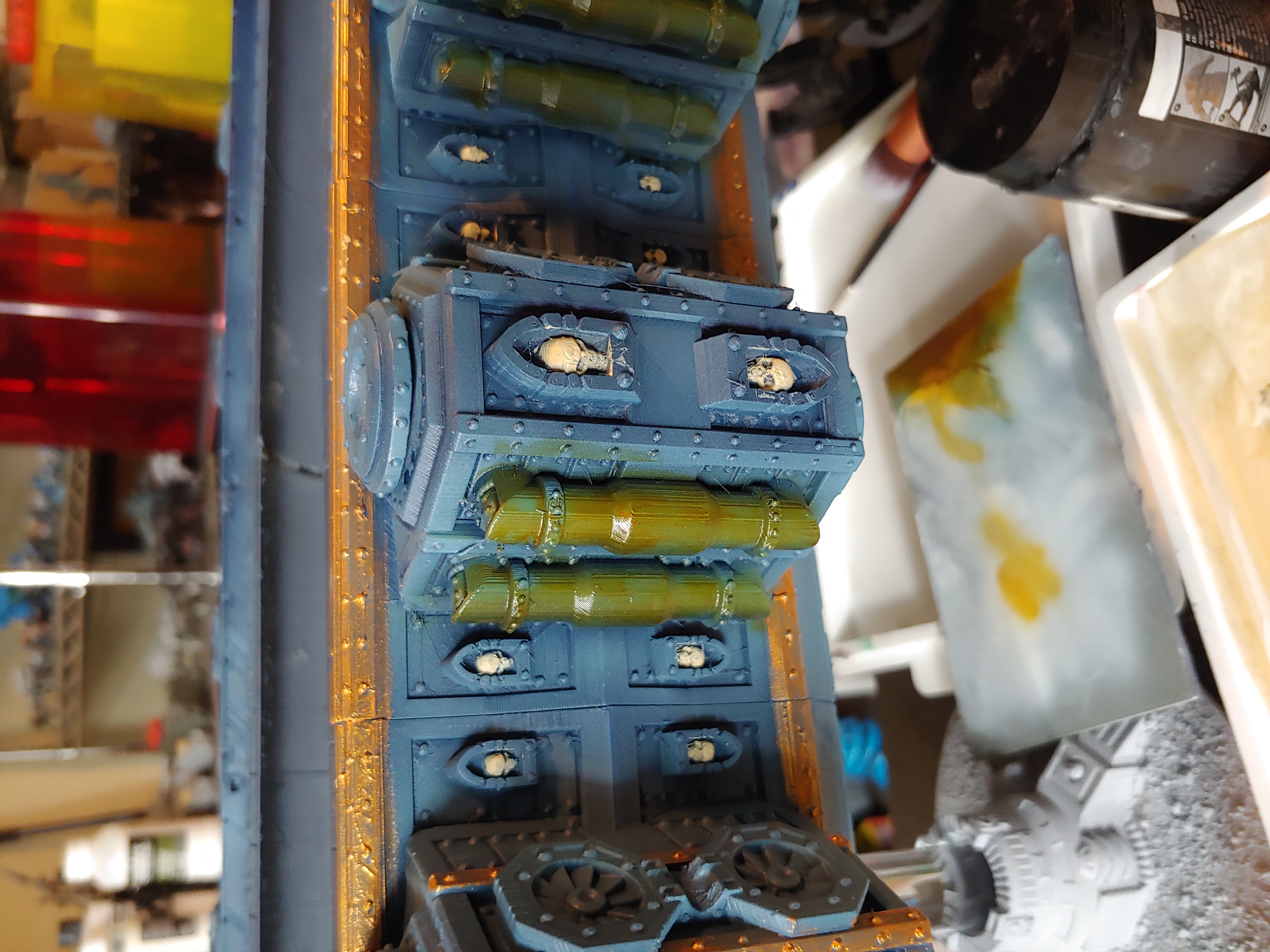 so i have added the more paint to the ship and i have found something better than magnets for moving parts, hollow tubes to let the turrets spin. i should have this all ready for the event this saturday. i should also have the other ship touched up and ready to go. after the event i will work on the fine detail work and touch up paint.