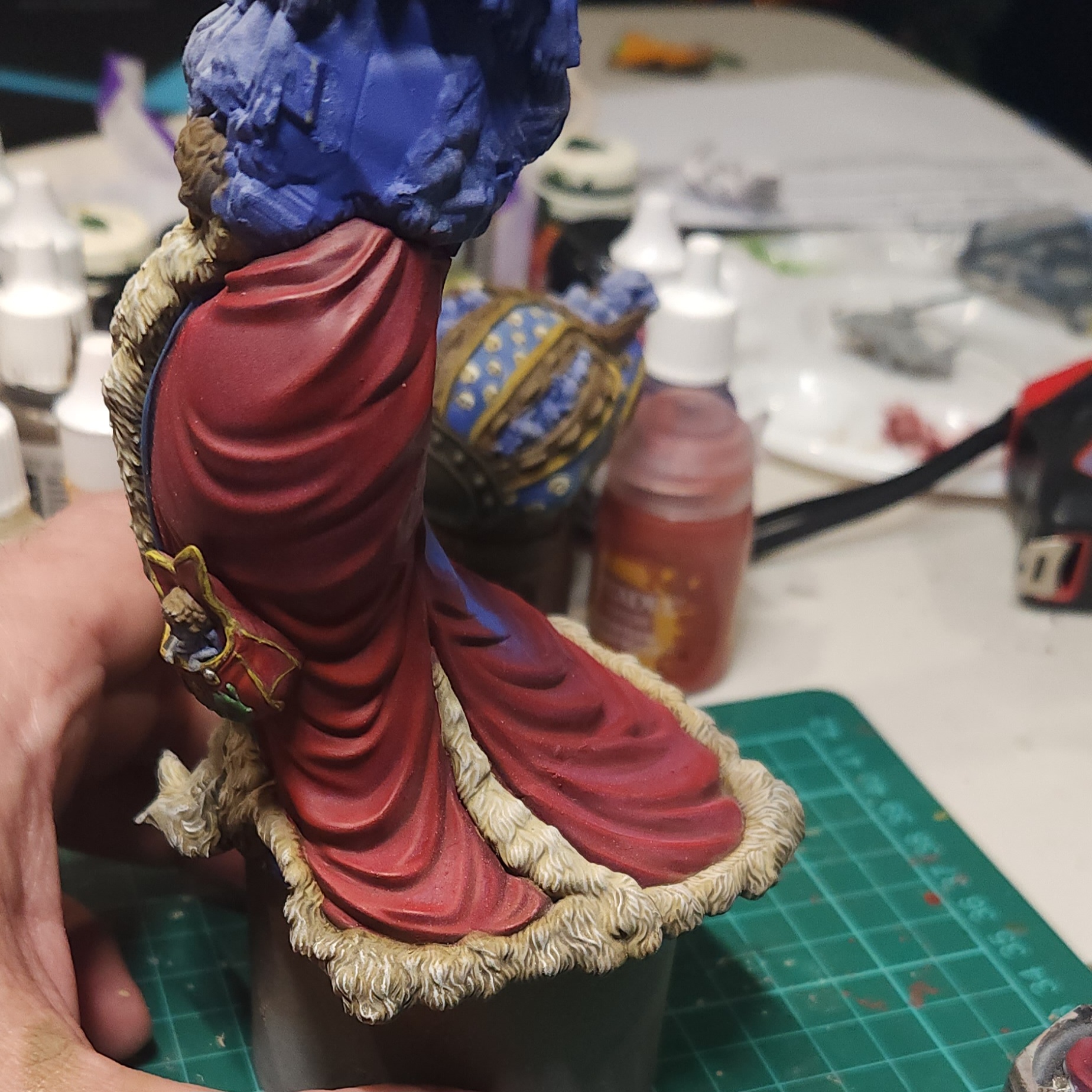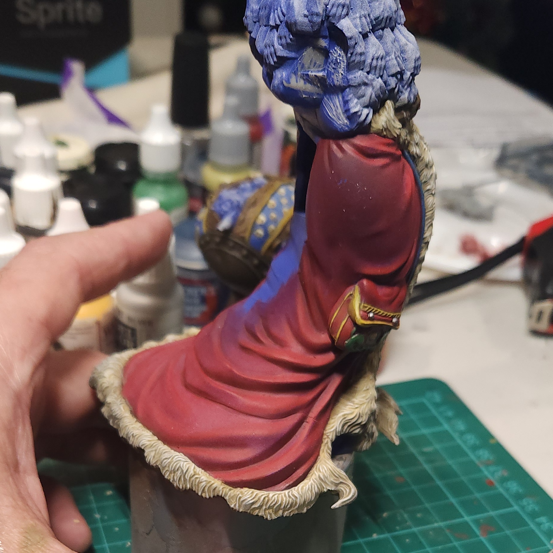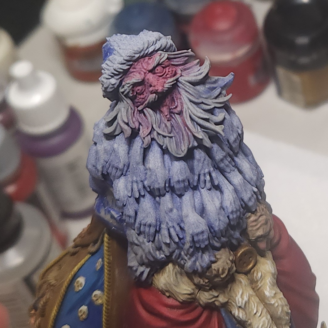 The fur trim on the cloak was carefully drybrushed in the same way the sleeve was earlier with Vallejo Ivory.