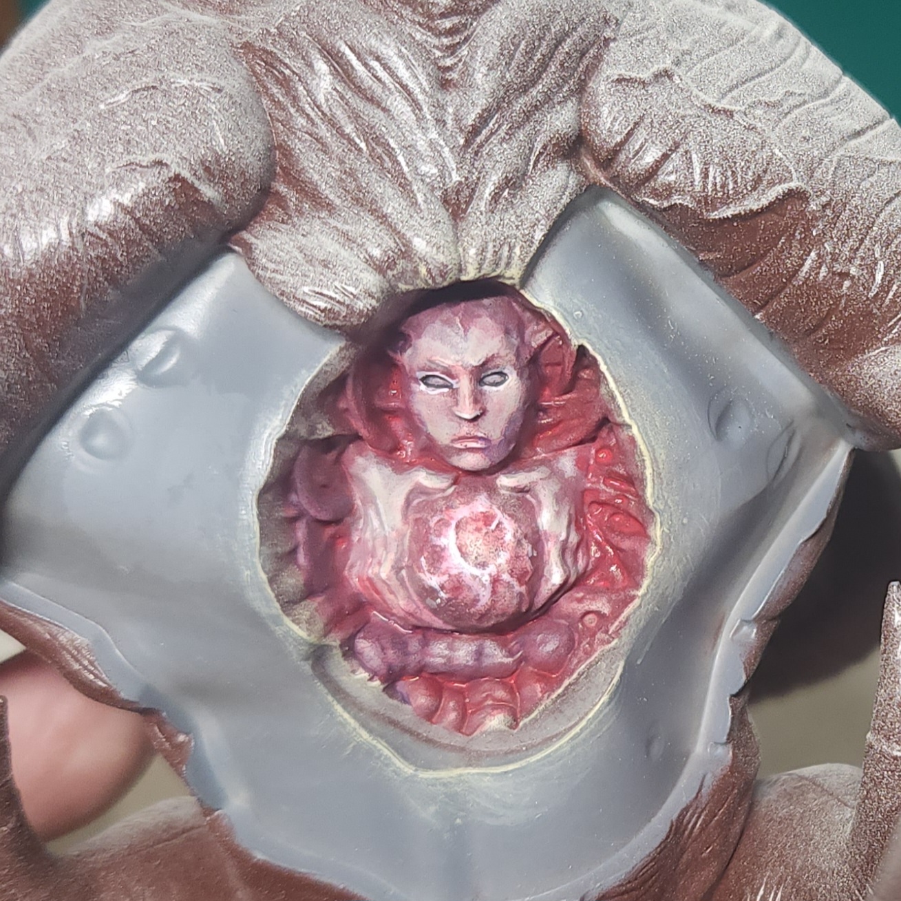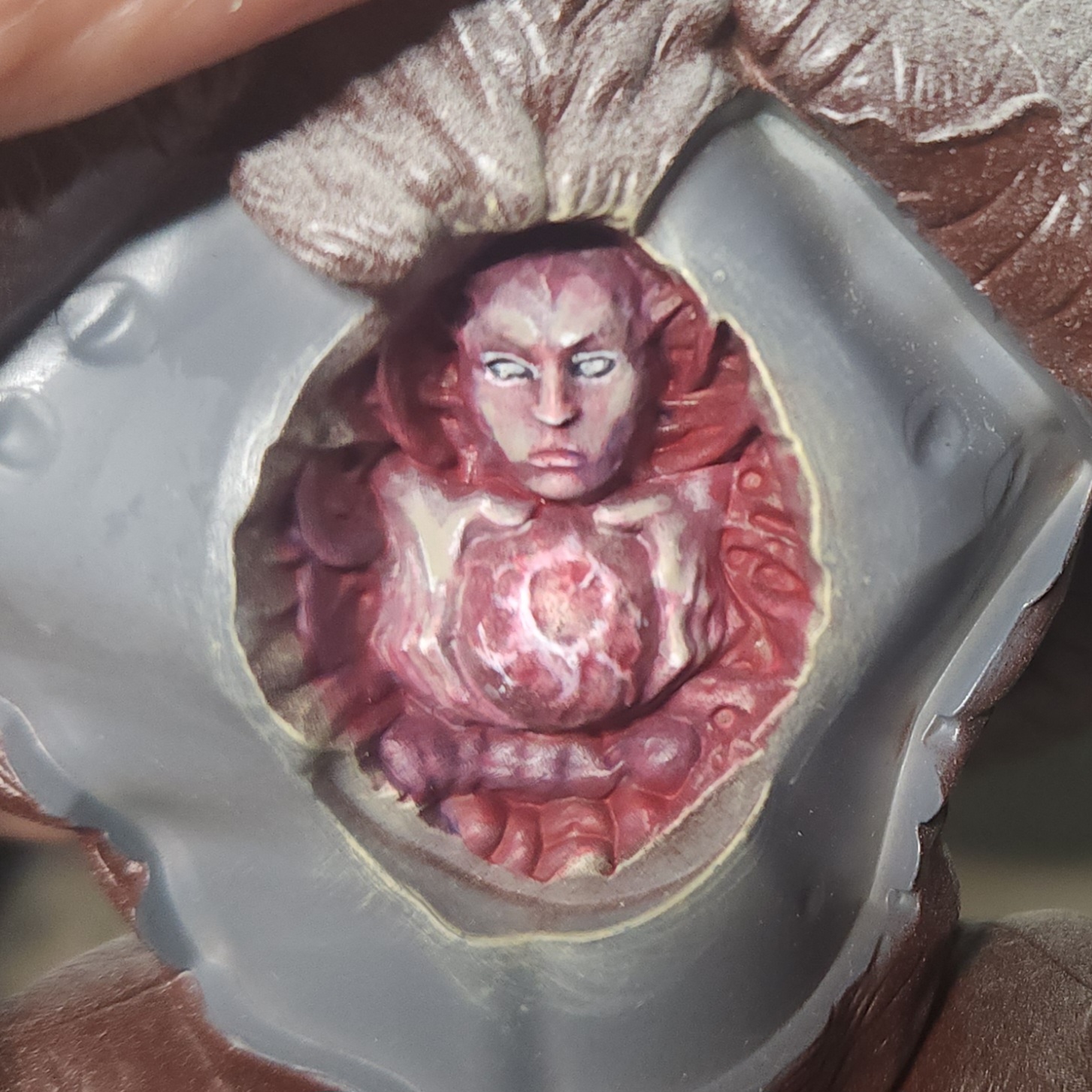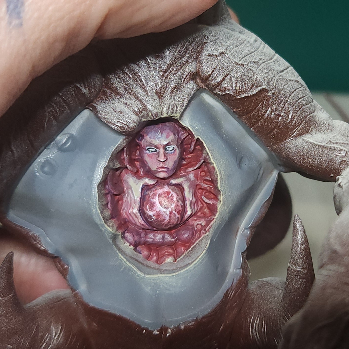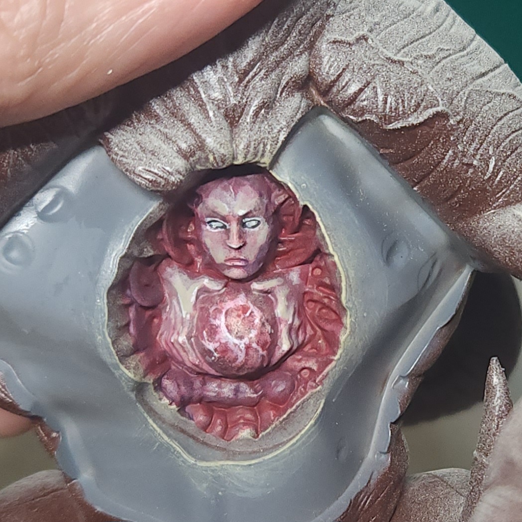 More glazing with the Vallejo Gory Red on the fused flesh in the sack. I also picked out some of the eyes with Vallejo Ivory just to add some extra disturbing factor, I suppose.